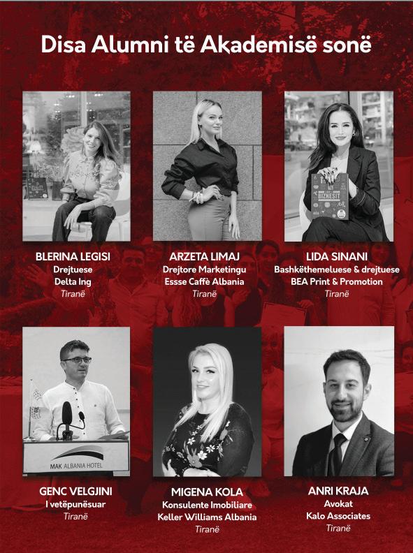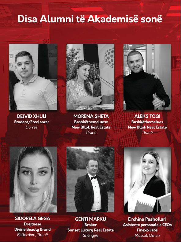 Disa mendime për nenga studentët & trajnerët “E lumtur të isha pjesë e një eksperience kaq të bukur; një përvojë që të motivon pozitivisht dhe të nxit krijimin e ideve.” BLERINA LEGISI, studente, administratore e Delta Ing shpk “Kënaqësi, argëtim, mësimdhënie, besim, trajnim, bashkëbisedim, përkushtim, ndarje idesh, buzëqeshje, të gjitha online.” ENIDA BOZHEGU, trajnere e modulit të lidershipit, lektore në të "Drejtë Penale & Procedurë Penale" “Në akademinë GEA do të kuptojmë së bashku strategjitë që mundësojnë transaksione të suksesshme, të plotësuara me përditësimet më të fundit të ligjit dhe tregut imobiliar.” ARMELIDA SHTIZA, trajnere e modulit të llojeve të pasurive & statusit kadastral, administratore e The Sunset.al Real Estate “Kënaqësi dhe përgjegjësi të jem trajner i modulit ‘Transformimi dixhital’. GEA të shndërron, të frymëzon dhe të rrit. Faleminderit për besimin.” DRITAN MEZINI trajner, themelues dhe drejtues i DM Consulting Services dhe duapune.com “Edukim-Trajnimi si eksperte imobiliare në GEA: zgjedhja ime e preferuar” MIGENA KOLA, studente, konsulente imobiliare në Keller Williams Albania