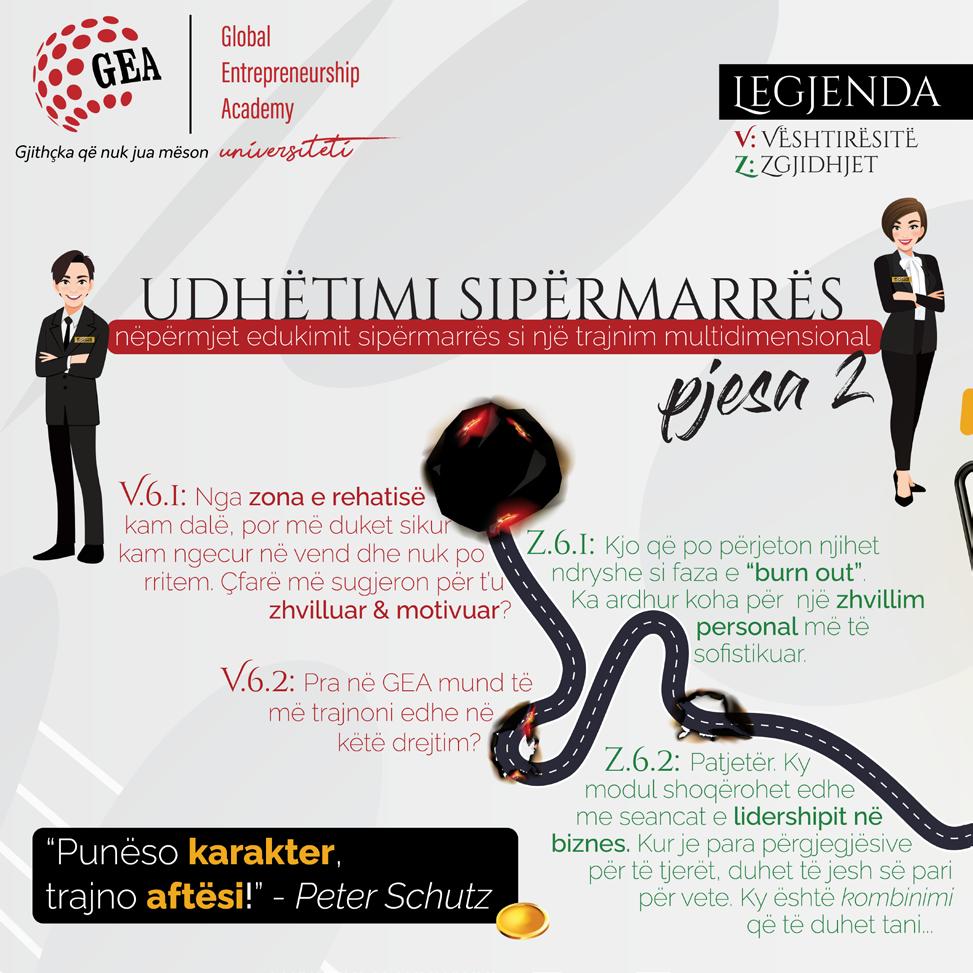 - Në një Botë në zhvillim të vazhdueshëm, gjithmonë nevojiten zgjidhje të reja dhe efiçiente. E ku ka ambient më të favorshëm për t`u zhvilluar profesionalisht sesa në Akademinë GEA, ku nëpërmjet moduleve interaktive me staf profesional, çdo student merr njohuri të përditësuara e të testuara në praktikë, si dhe mentorohet se si të gjejë rrugën e duhur për t`u treguar vizionar dhe inovator në fushat përkatëse të investimit.