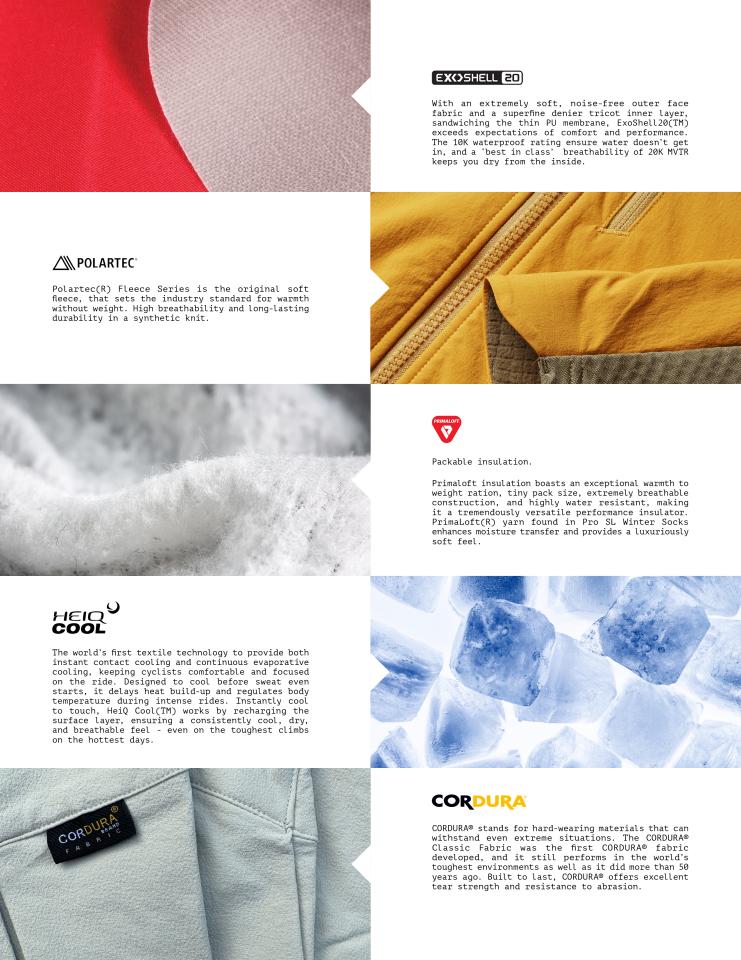 • High stretch, windproof, breathable panels in areas most exposed to the elements