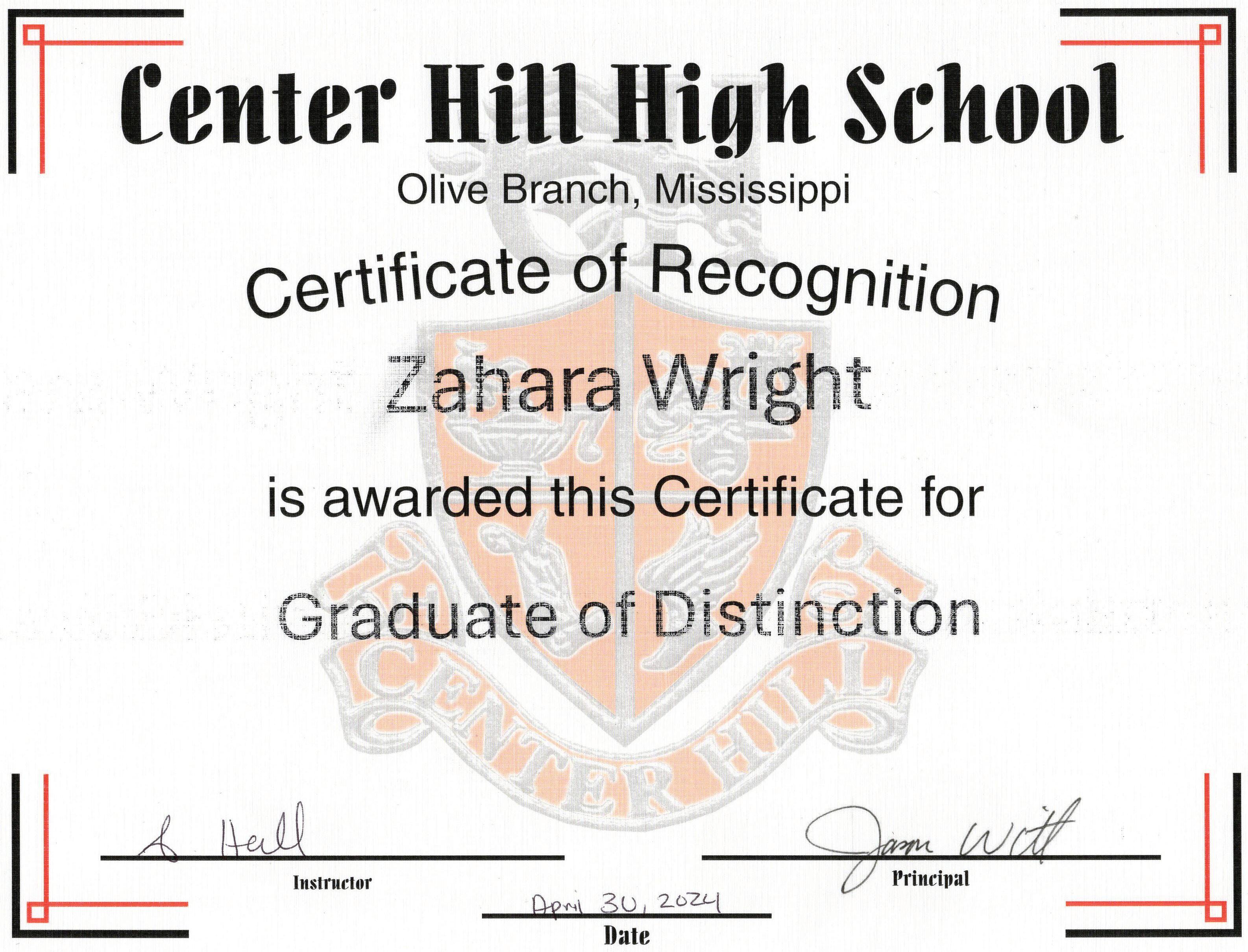 THE CENTER HILL HIGH SCHOOL CLASS OF 2024