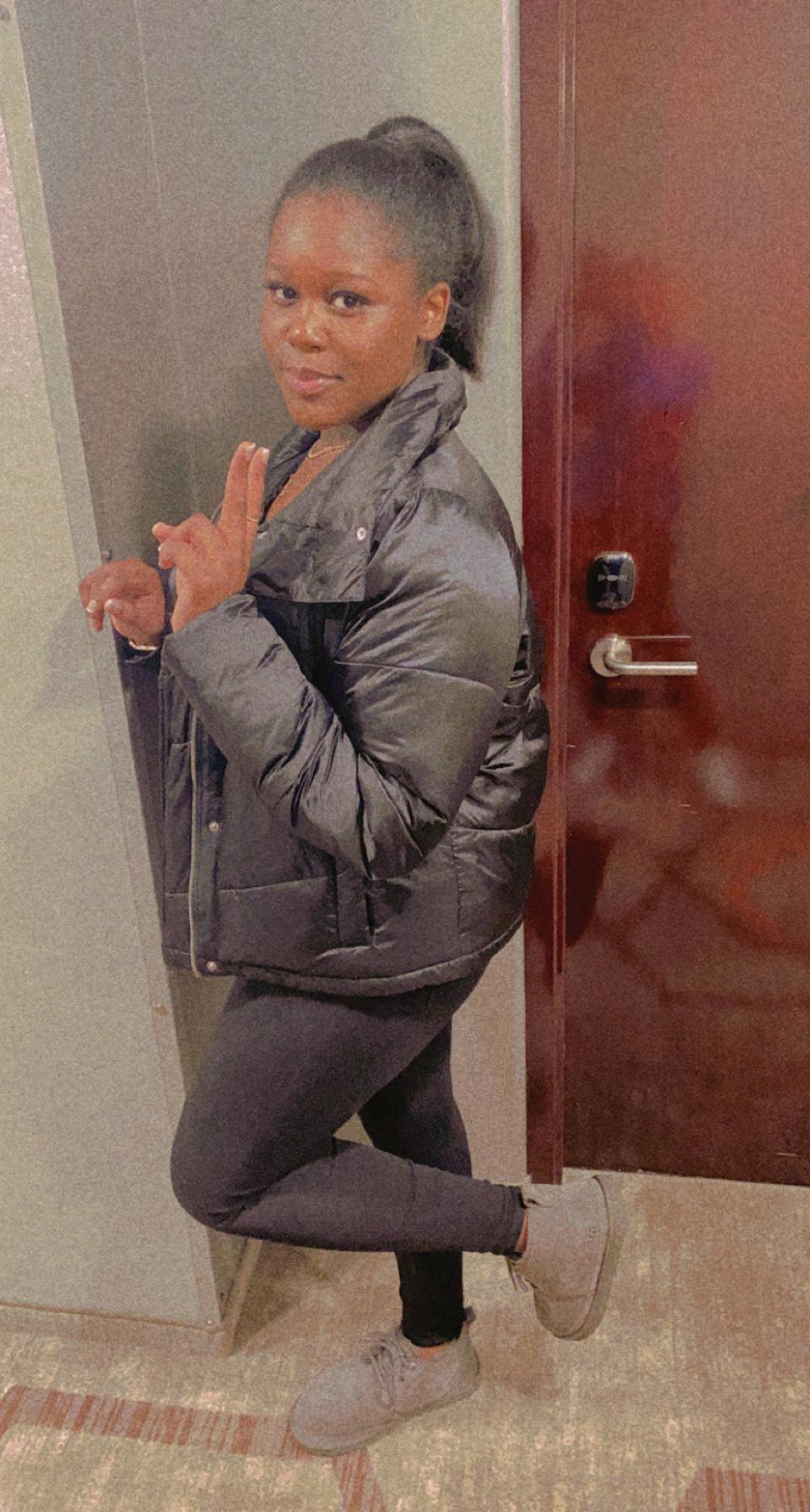 My go-to gear: tights, a hoodie and a Telfar bag.