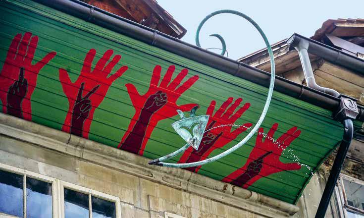 erwarteten Dienst wieder auf – früher abenteuerlich per Hand montiert, heute Suva-konform mit Hebebühne. Das Kunstobjekt hat längst einen festen Platz im kulturellen Leben der Altstadt. Fällt es einmal unerwartet aus, häufen sich die Anfragen besorgter Bernerinnen und Berner. Nicht verwunderlich also, dass der Wasserspeier sogar in offiziellen Stadtführungen gewürdigt wird.