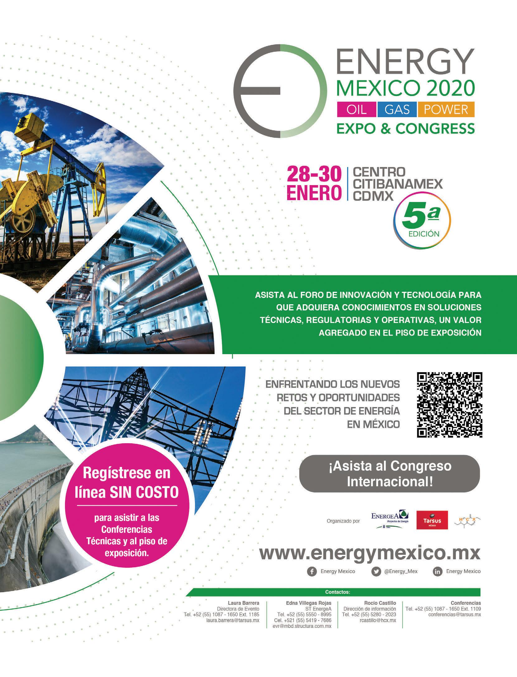 Energy21, Revista Noviembre-Diciembre 2019. Editor Responsable: Osiel Isaías Cruz Pacheco. Domicilio de la Publicación: Luz Saviñon N° 1707 Col. Narvarte, C.P. 03020, Benito Juárez, Ciudad de México, Tels. (55)5682 3989, 2455 3775 y 5536 9960 e-mail: dramirez@t21.com.mx, Fecha de impresión Octubre de 2019.