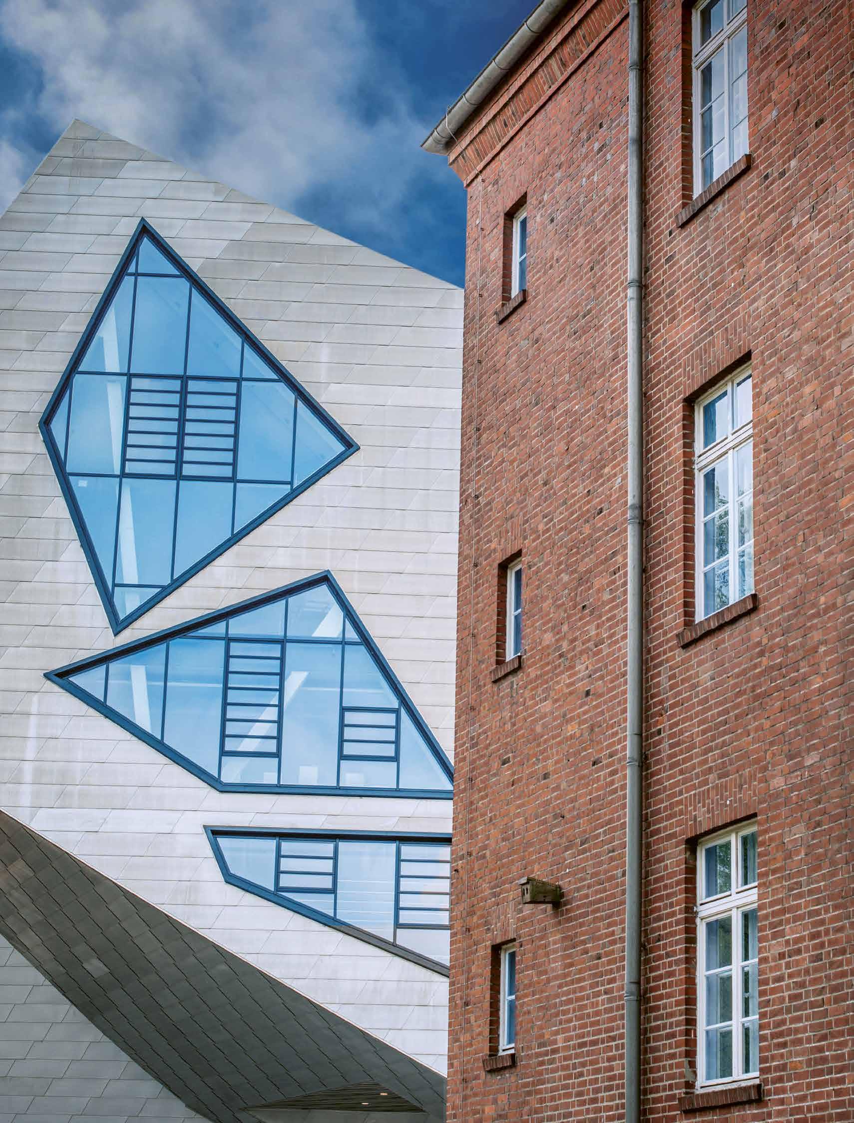 Leuphana is located on the site of a former army barracks. Its futuristic Central Building – designed by the architect Daniel Libeskind – forms a striking counterpoint to its 28 other brick buildings. As the new campus hub, this spectacular building is the ideal place for