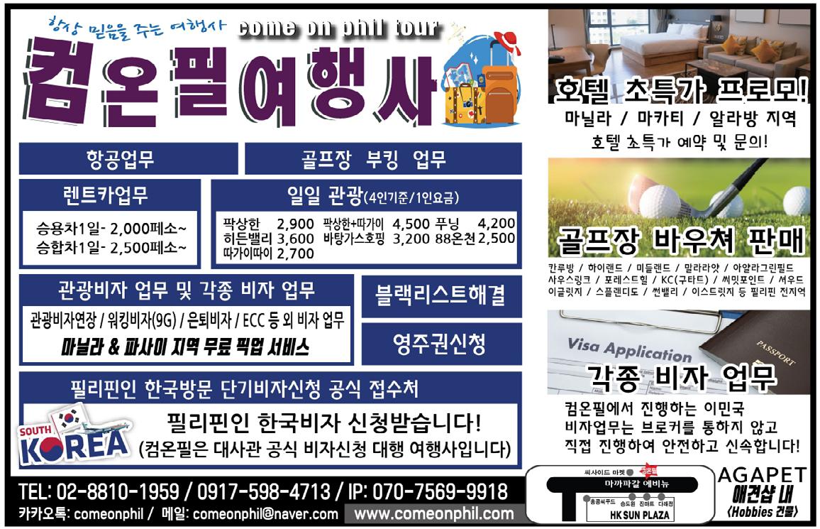 필리핀 한인 커뮤니티 : philsalgi.comA-24ㅣ뉴스게이트 필리핀 소식 & 뉴스 이제 philsalgi.com로 검색하세요! 태국인 184명 중 125명 재심 대상에 / 10시간 끝에 112명 이례적 입국 불허 입국 불허된 태국인 본국으로 돌아가 / 심사 통과 태국인은 2박 3일 일정 소화 불법 취업 증가에 입국 심사 대폭 강화 제주 온 태국인 112명 돌려보냈다… 입국 불허 무슨 일