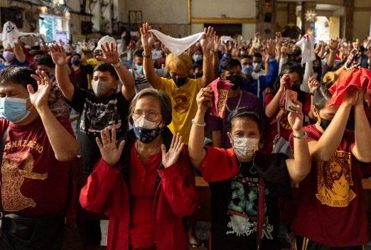 제를 즐겼습니다. 필리핀은 아시아의 유 일한 가톨릭 국가입니다. 전통적으로 매년 1월 9일은 검은 나 사렛 신봉자들이 1767년 마닐라의 인 트라무로스에서 퀴아포로 검은 나사렛 상(예수상)을 옮긴 것을 기념하기 위해 '트라스라시온'(Traslacion)이라는 성