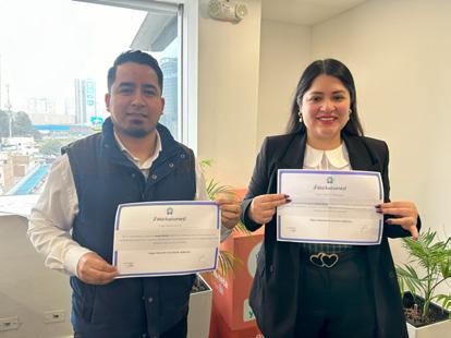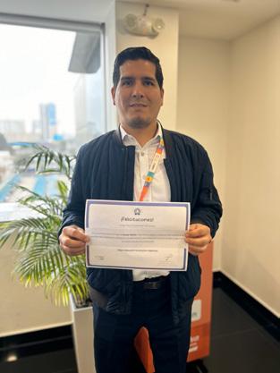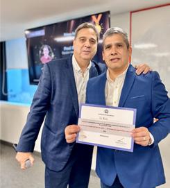 Alonso Rivera siendo reconocido como el mejor gerente de equipo de junio y julio. A la derecha, Paul estela recibiendo su diploma a mejor gerente de equipo del mes de julio.