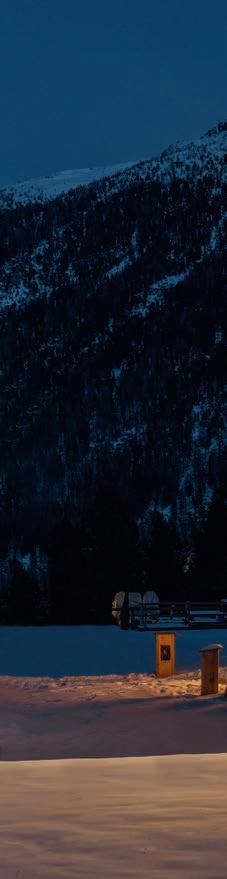 Nimm an warmen Sommertagen ein erfrischendes Bad oder betrachte im wohlig-warmen Wasser den Tanz der Schneeflocken. Der Blick vom Hot Pot aus richtet sich immer ins unverbaute Val Bever.