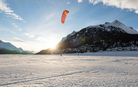Snowkiten ist das perfekte Winter-Pendant zum Kitesurfen auf dem zugefrorenen Silvaplanersee. Die Kombination aus Wind, Schnee und Geschwindigkeit macht es zu einem aussergewöhnlichen Erlebnis. Wer sich auf der Piste schon zu Hause fühlt, wird auch das Snowkiten rasch beherrschen.