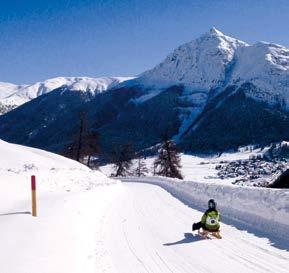 Seit den 1930erJahren bietet der Olympia Bob Run Gästefahrten von St. Moritz nach Celerina an. Im Viererbob geht es mit bis zu 135 km/h durch die Natureisbahn. Speed up – Since the 1930s, the Olympia Bob Run offers guest rides from St. Moritz to Celerina. In a fourman bobsled, you'll race down the 1,722metre natural ice track.