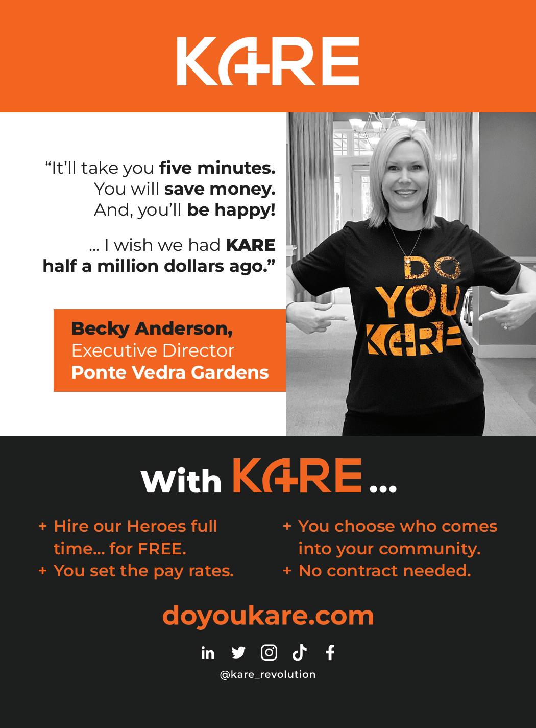One of FSLA’s member benefits is through our partnership and offerings with CareerSource Florida. As you will learn more about later (page 36), CareerSource is a wonderful additional tool to have in your toolbox to combat the staffing shortages of our industry. Resources include but are not limited to funding opportunities, On-The-Job (OJT) training, training to increase existing employees’ job skills, and creating ALF-focused job fairs. FSLA is happy to offer
