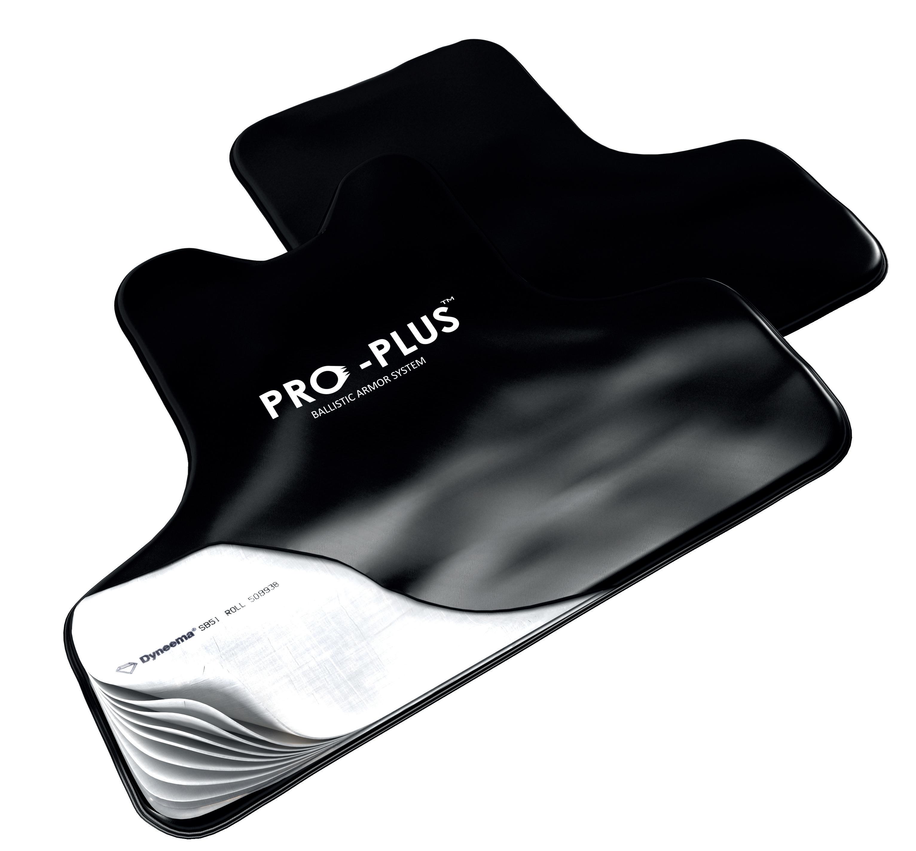 The PRO-PLUS™ series ballistic panels are tested by the new NIJ Standard-0101.06 protocol and provide Level IIIA protection. The panel features a robust and durable ballistic design incorporating layers of Dyneema®, combined with the latest Twaron Trauma Reduction Technology. This unique combination of technologies results in very low trauma values for the PRO-PLUS™ series in comparison with other ballistic packages on the market.