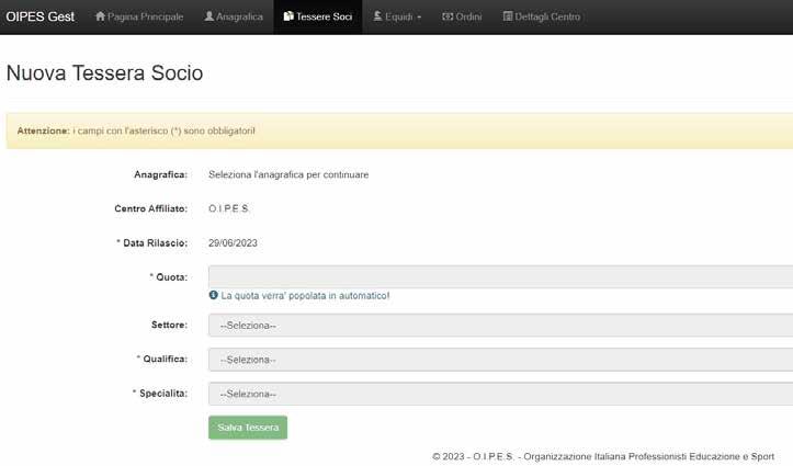 CREA LA TUA TESSERA PAGA LA TUA TESSERA