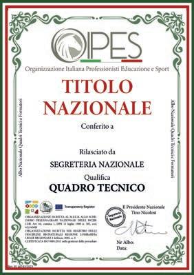 Attestato nazionale Quadri Tecnici OIPES – Titolo nazionale per le attività sociali ludiche amatoriali Organizzazione Italiana Professionisti Educazione e Sport – Organizzazione iscritta al M.I.U.R. Ministero dell’Istruzione allo schedario dell’anagrafe nazionale delle ricerche