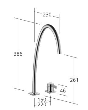 Hendel kan monteres på høyre eller venstre side. Svingbar tut 160°