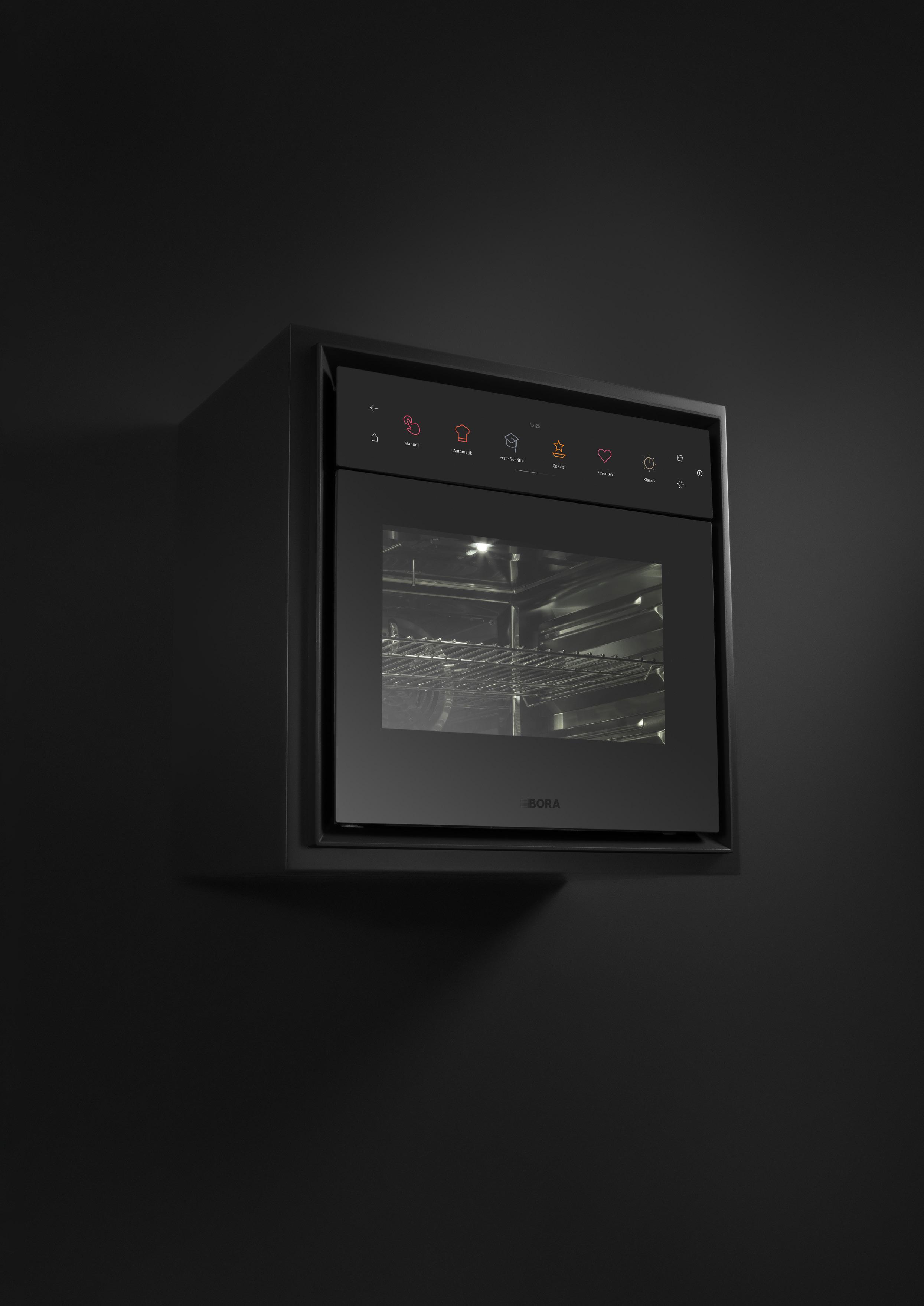 BORA X BO avlägsnar både matlukt och ånga innan du öppnar ugnsluckan och används intuitivt med hjälp av en stor pekskärm, lika enkelt som en smartphone.