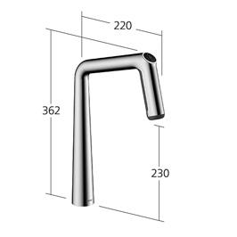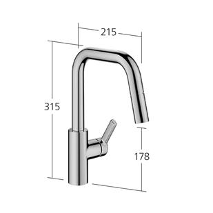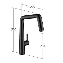 Genom en svängradie av hela 360 ° och ett duschhuvud som kan dras ut med upp till 60 cm, ökar räckvidden avsevärt.