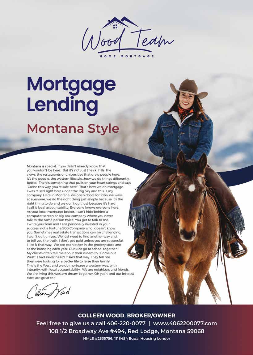 Lisa’s passion for the outdoors and all the activities Montana has to offer—such as horseback riding, hunting, snowshoeing, fly fishing, and four-wheeling—gives her a unique perspective on the land and properties that best suit her clients’ needs. From a lifetime of personal experiences as a local construction contractor's wife, 4H Mom, Mustang Sports mom, Snowboarding mom, working ranch horse mom and hardworking entrepreneur Lisa, understands the values and lifestyle of Montana