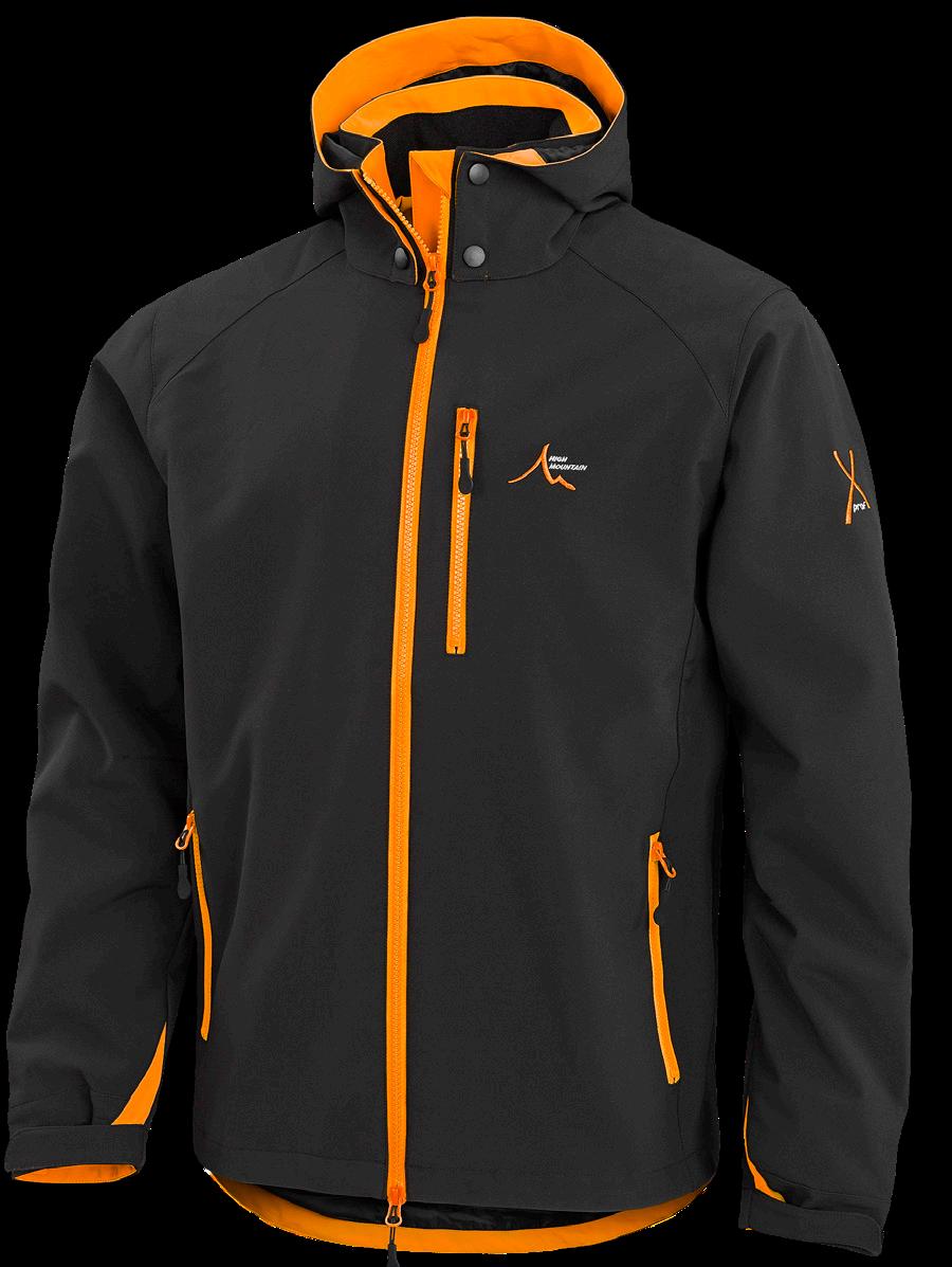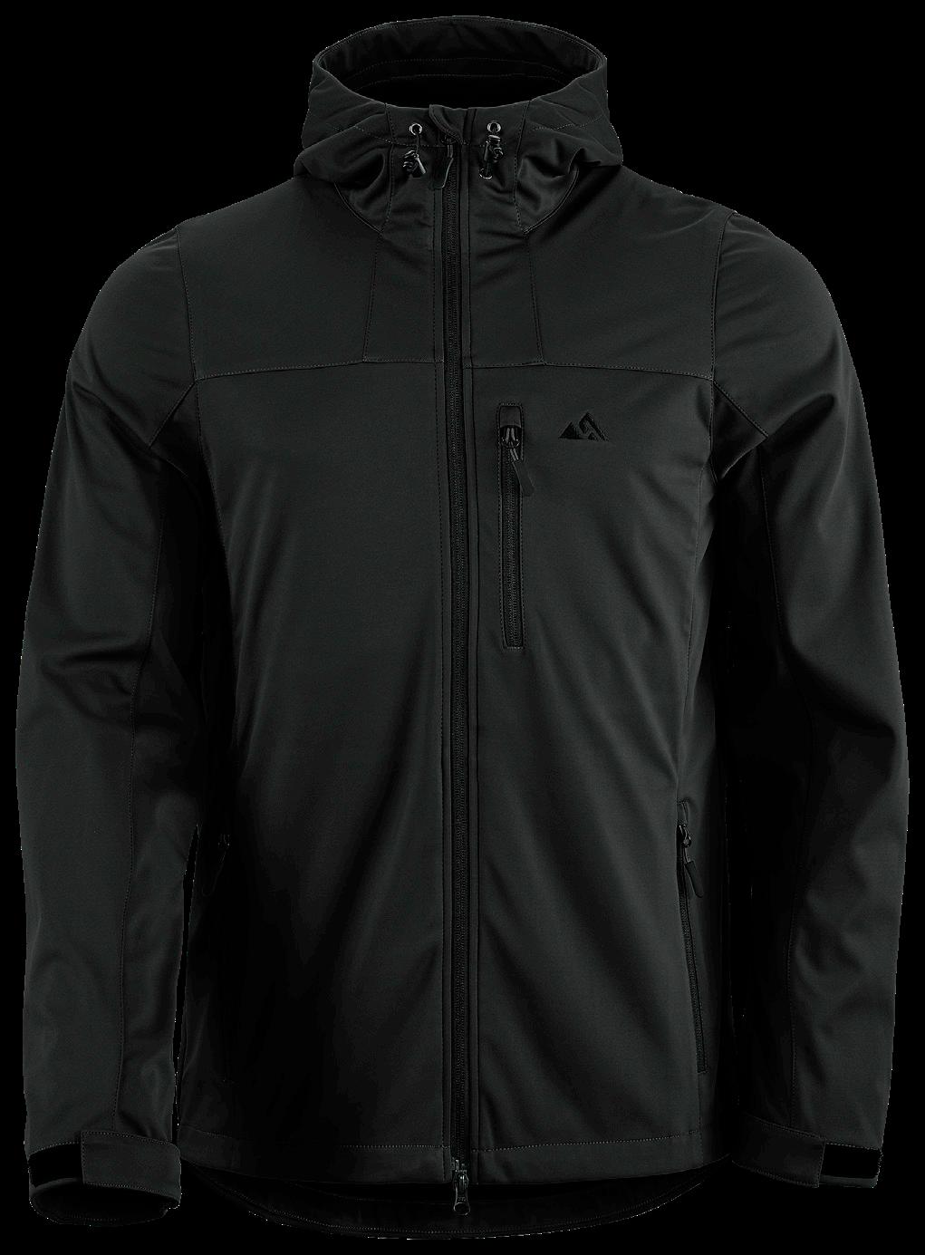 Mjuk och smidig jacka i stretchig softshell. Praktiska ventilationsdragkedjor med mesh under armarna. Två fickor fram och en bröstficka. Ställbar, fast huva och ställbara ärmslut. 100% polyester.