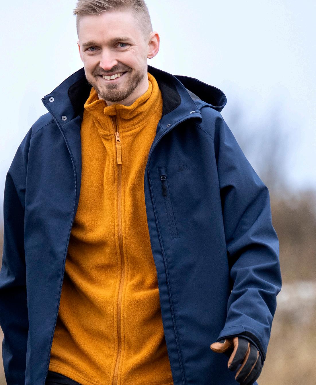 Mjuk och smidig softshelljacka för vardag och friluftsliv. Vindtät, vattenavvisande med andasfunktion 6000 g/m²/24h. Löstagbar huva, krage i mjuk fleece samt justerbara ärmslut och nederkant. Kraftig tvåvägsdragkedja samt sidfickor, bröstficka och innerficka med dragkedja. Blankt foder på insidan. Yttertyg: 96% polyester, 4% elastan. Foder: 100% polyester.
