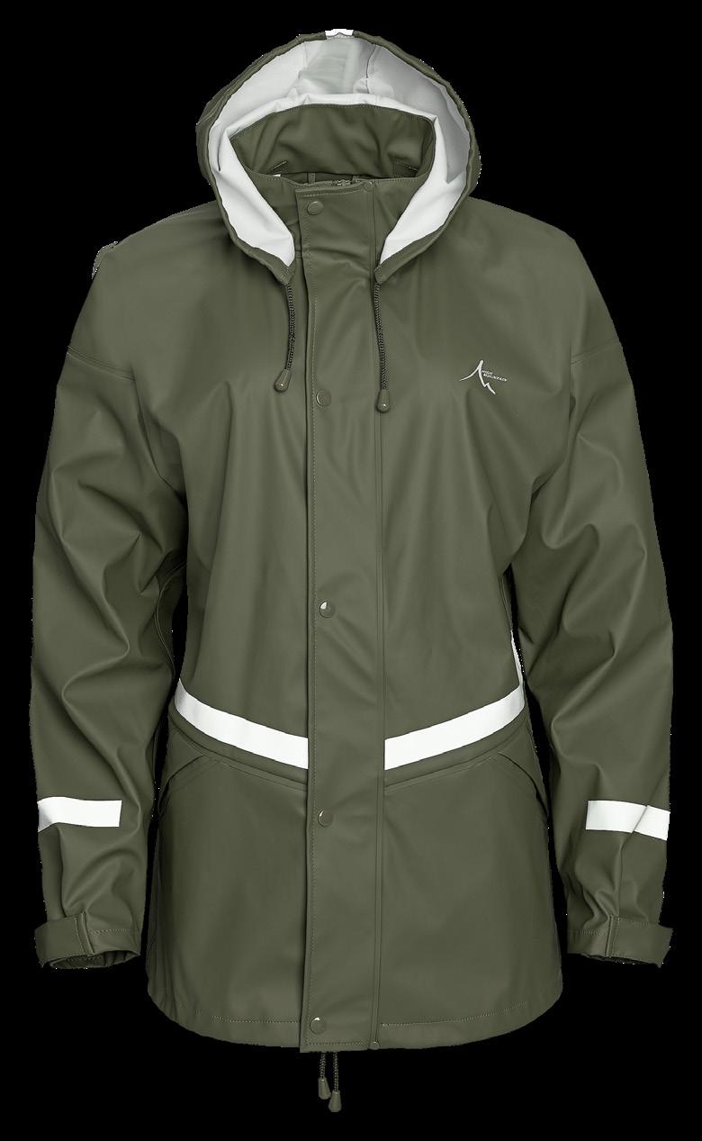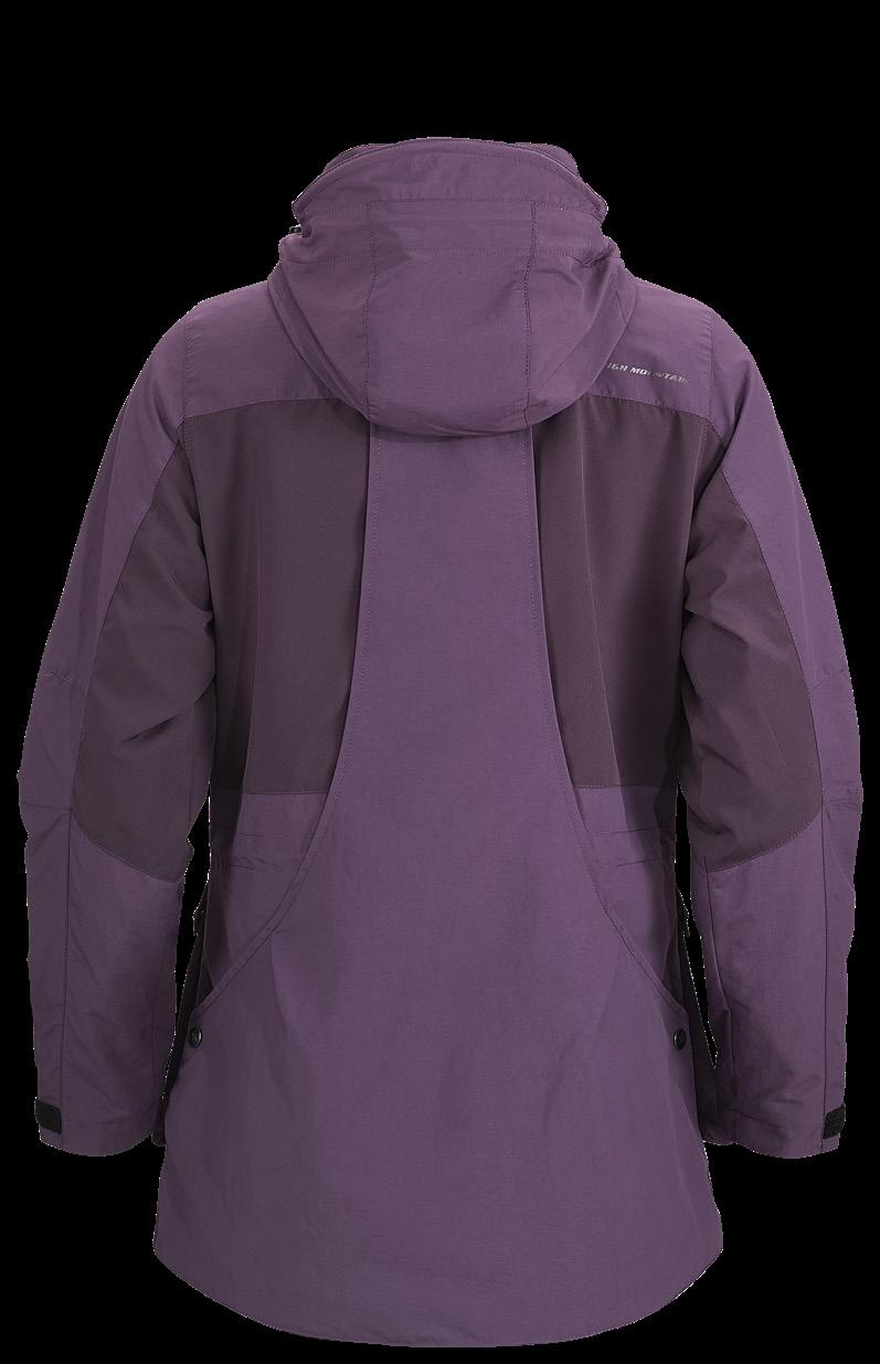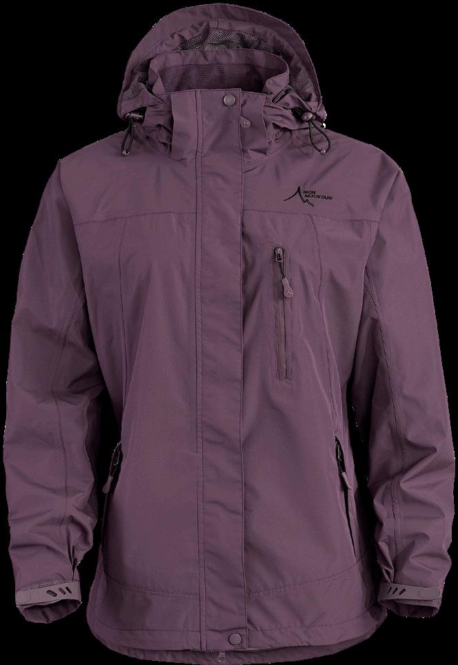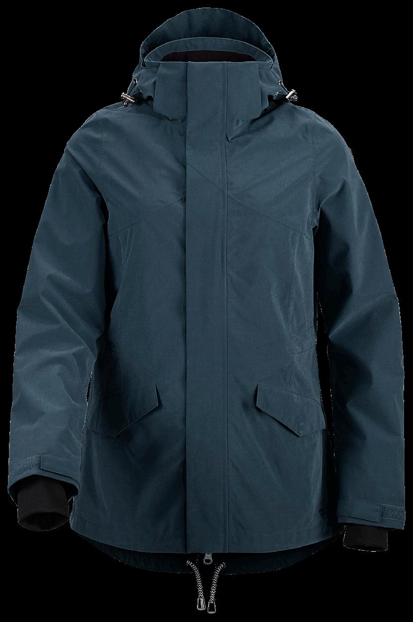 High-Tex-membran med andasfunktion 6000 g/m²/24h. Avtagbar huva samt ställbar vidd i ärmslut och nederkant. Kraftig tvåvägsdragkedja samt sidfickor, bröstficka och innerficka med dragkedja. Yttertyg 95% polyester, 5% elastan. Foder 100% polyester.