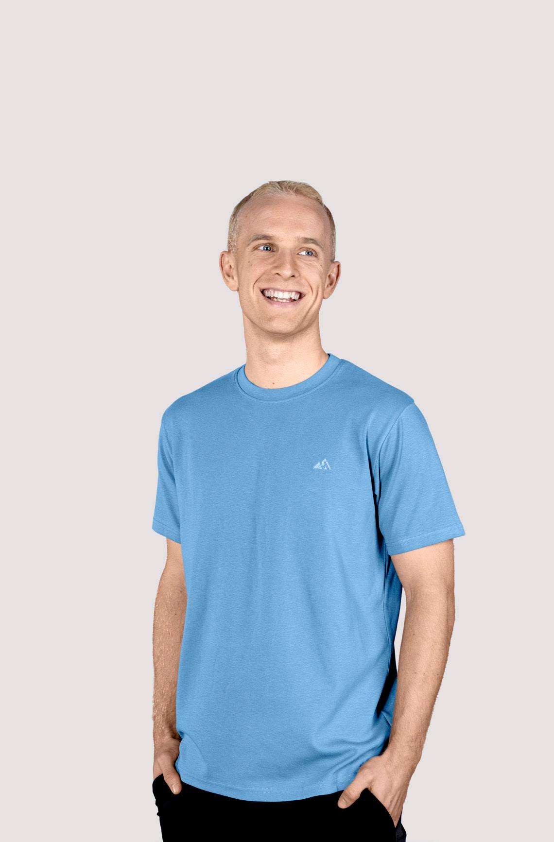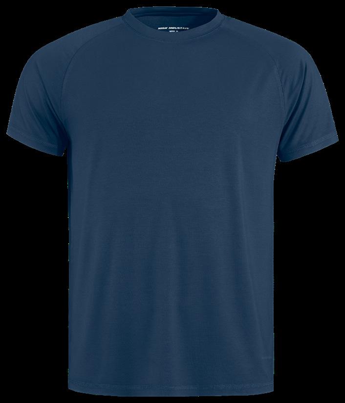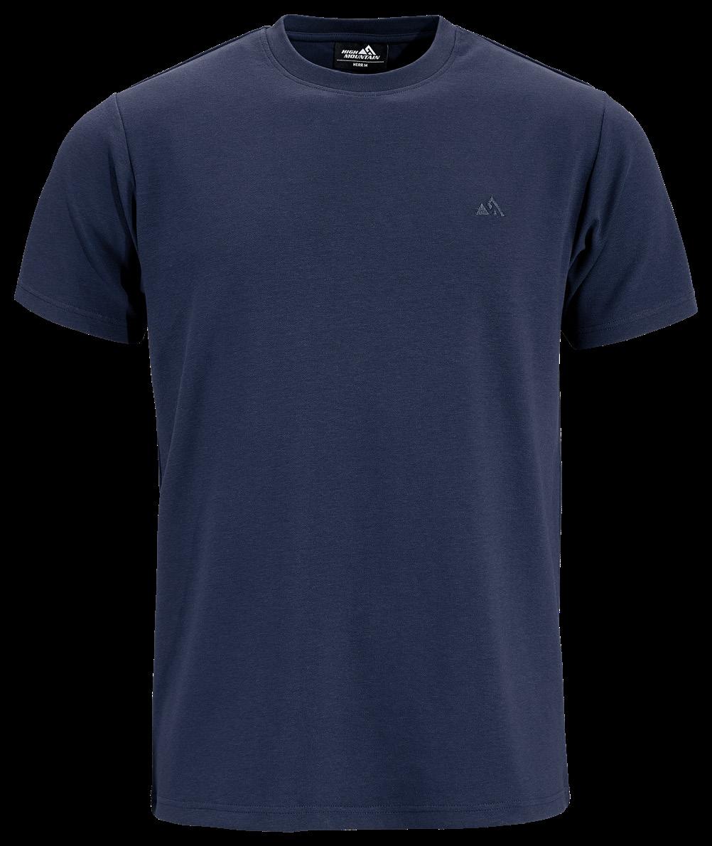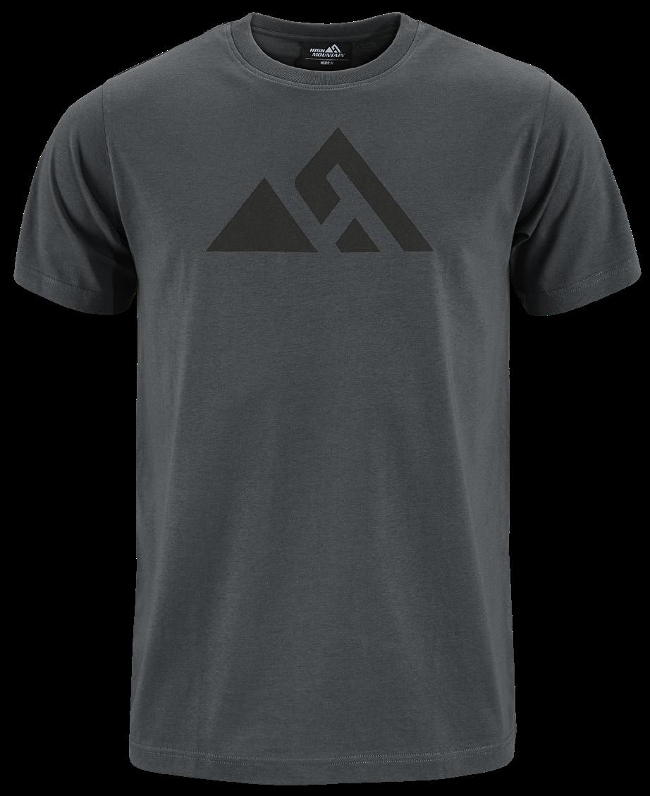 T-shirt med High Mountain-logga på bröstet. Tillverkad av 100% GOTS®-certifierad bomull. Blå, Antracitgrå, Offwhite, Mörkgrön, Senapsgul. Stl. S-3XL.