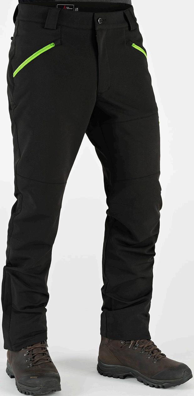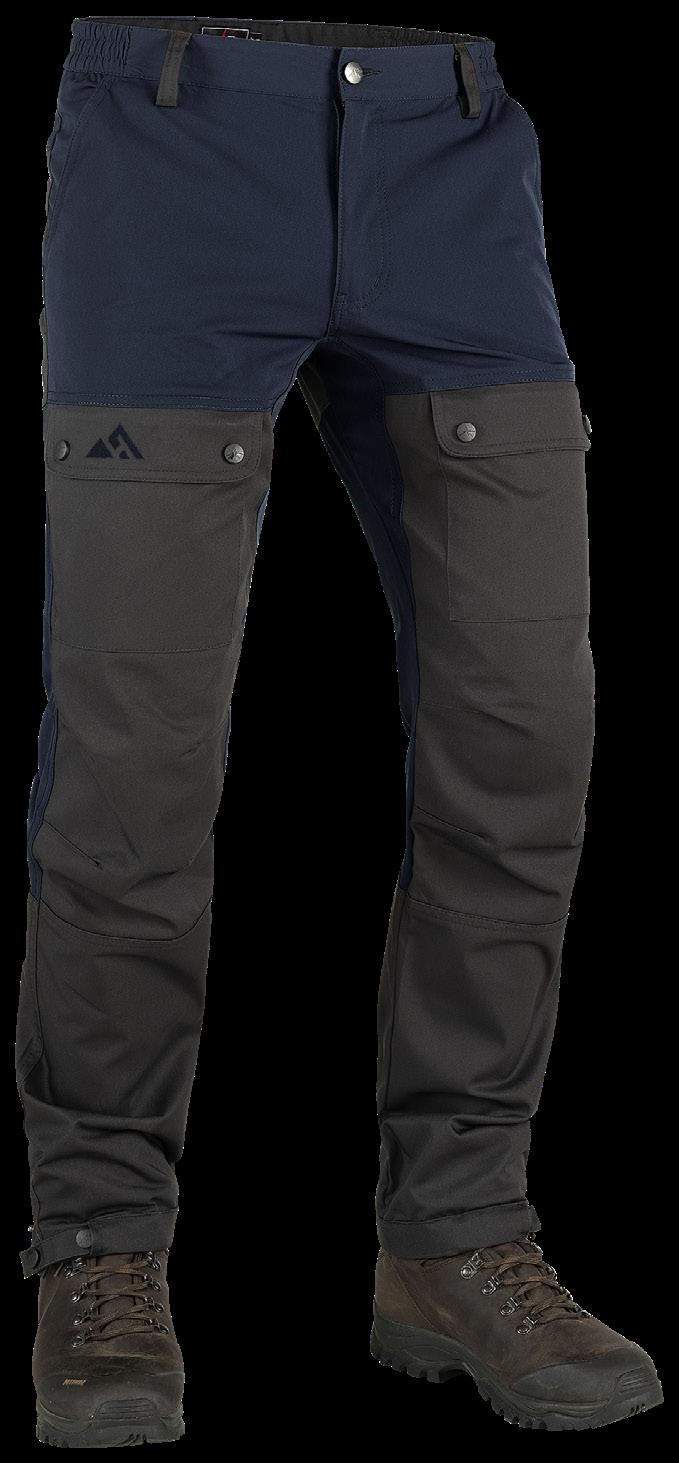 Smidiga och följsamma byxor i stretchig softshell. Perfekt för ett aktivt friluftsliv och för vardagsaktiviteter under vår och tidig höst. Justerbar midja med kardborre. Två framfickor, två benfickor med dragkedja varav den ena har en mobilficka i mesh. Ventilationsdragkedja på baksidan av låret. Förstärkt benslut med dragkedja och kil. Förböjda knän. Yttertyg: 100% polyester. Förstärkning: 96% polyester, 4% elastan. Svart, Blå.