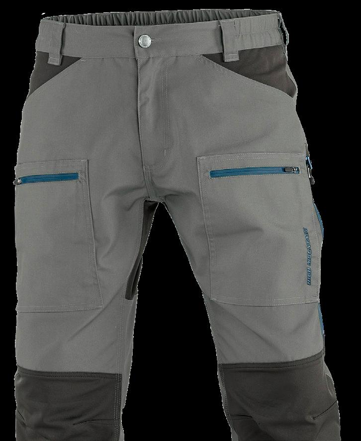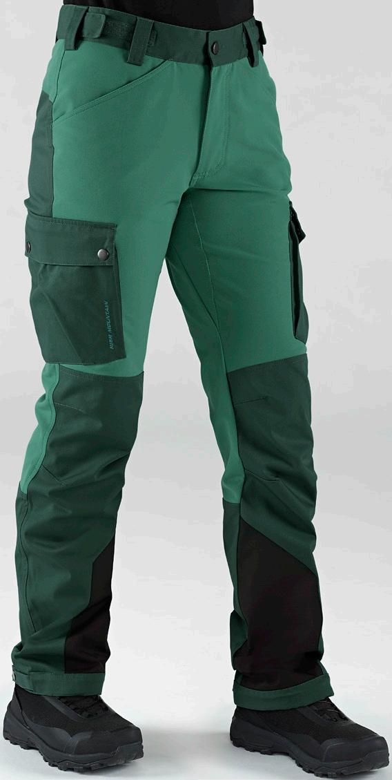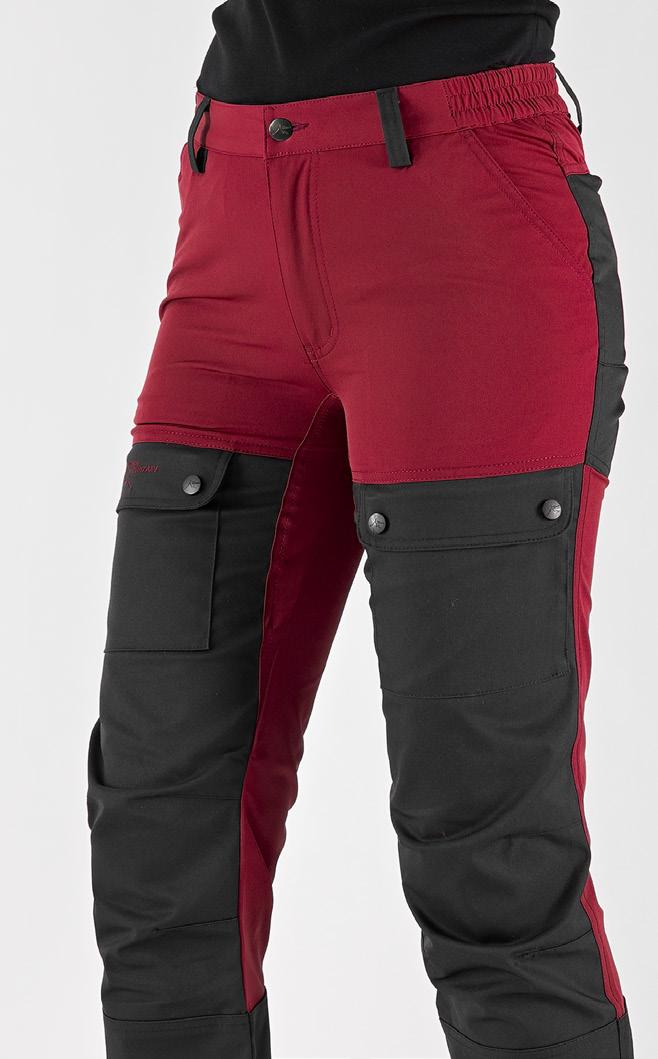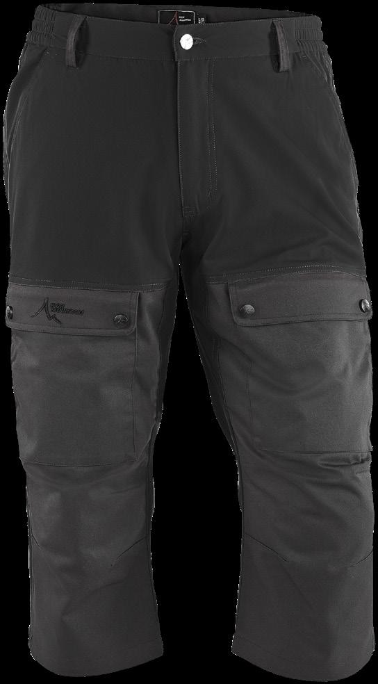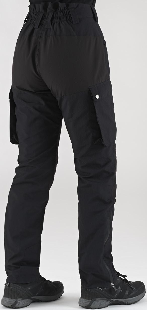 Smidig och funktionell med skön stretch som ger full rörelsefrihet. Mjuk och lätt ruggad insida. Två framfickor, en benficka och två bakfickor - samtliga med dragkedjor. Förböjda knän och benslutet har en kil med dragkedja och knapp. 96% polyester, 4% elastan.