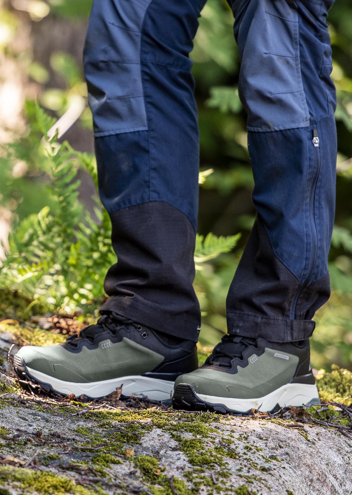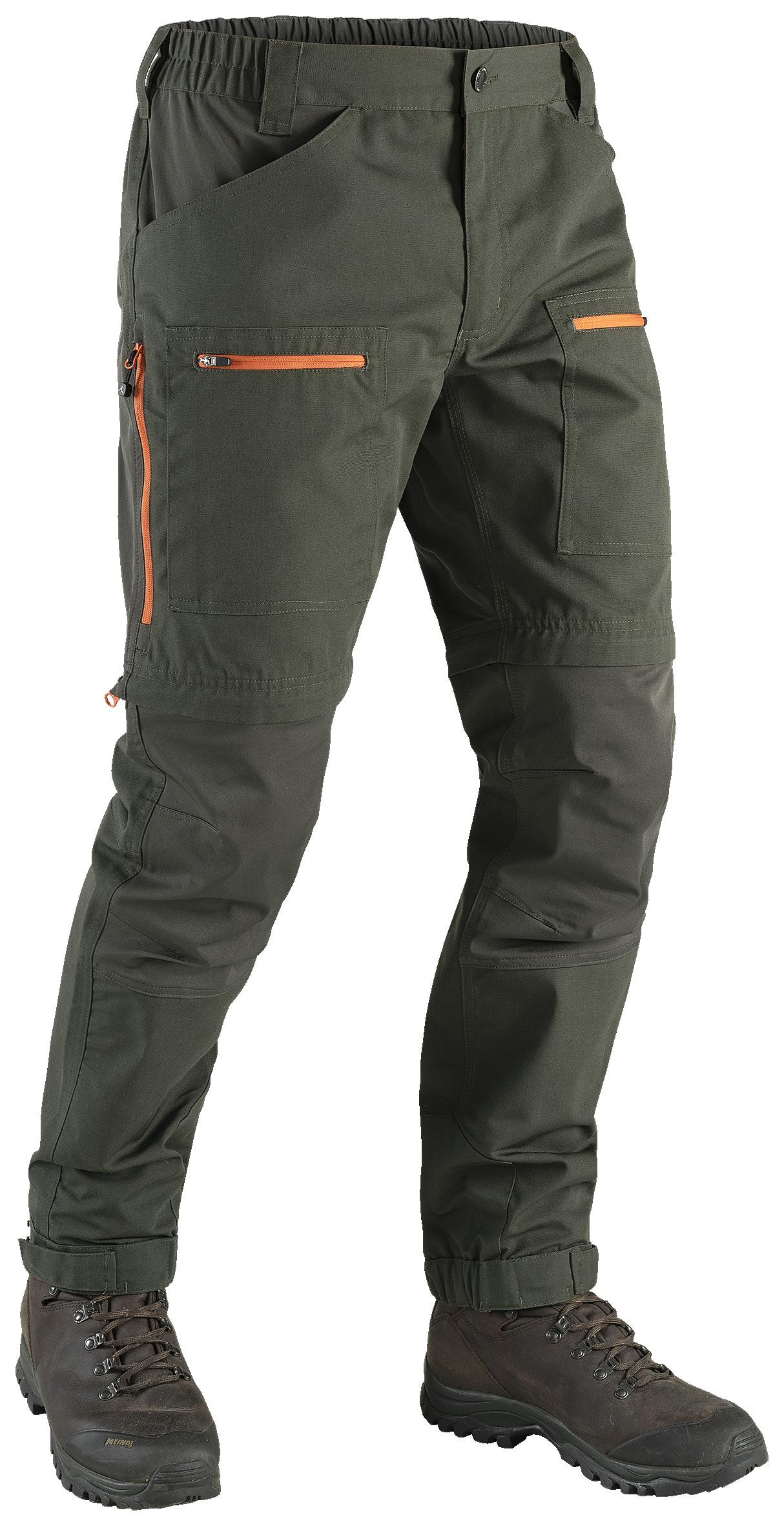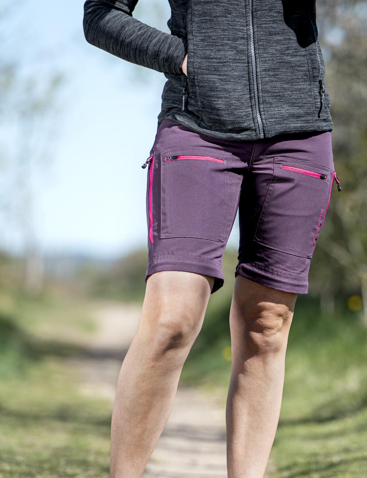 Smidig och funktionell med skön stretch som ger full rörelsefrihet. Mjuk och lätt ruggad insida. Två framfickor, en benficka och två bakfickor - samtliga med dragkedjor. Förböjda knän och benslutet har en kil med dragkedja och knapp. 96% polyester, 4% elastan.