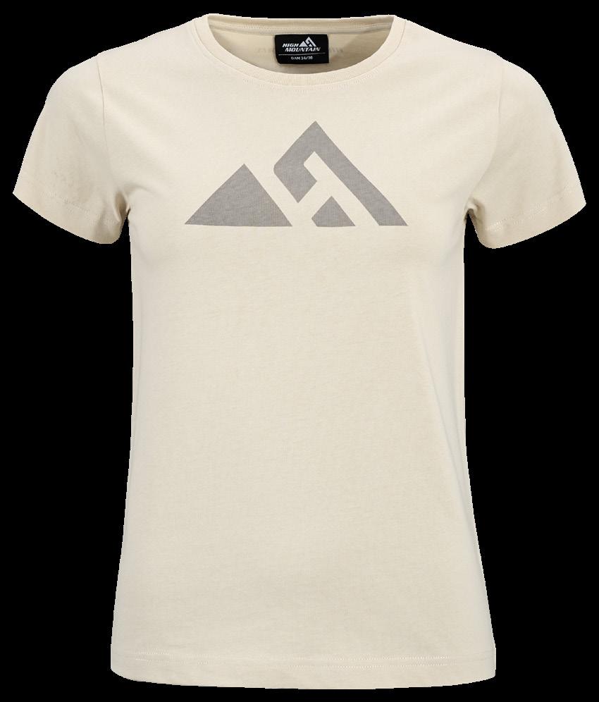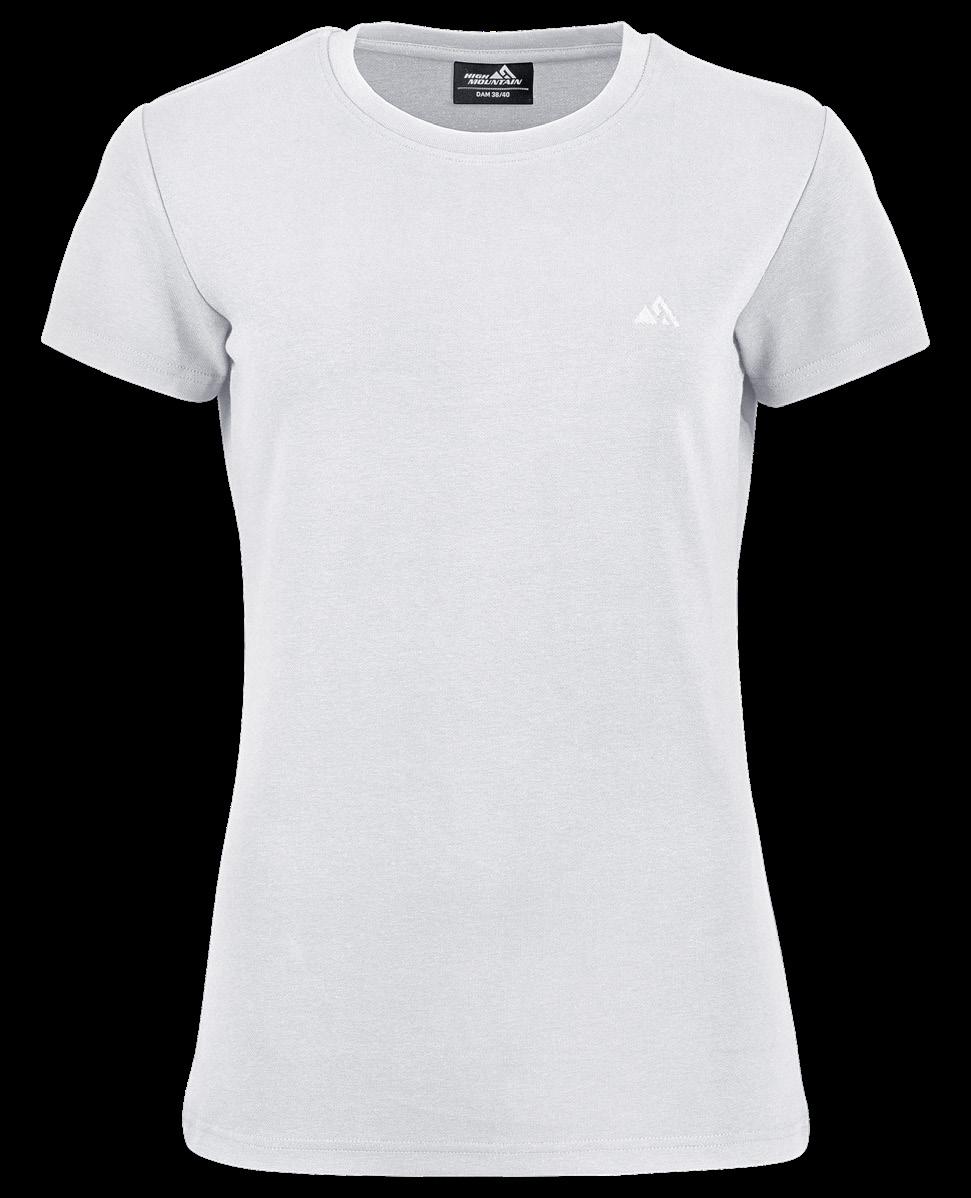 T-shirt med High Mountain-logga på bröstet. Tillverkad av 100% GOTS®-certifierad bomull. Rosa, Antracitgrå, Offwhite, Mörkgrön, Mörklila. Stl. 34/36-46/48.