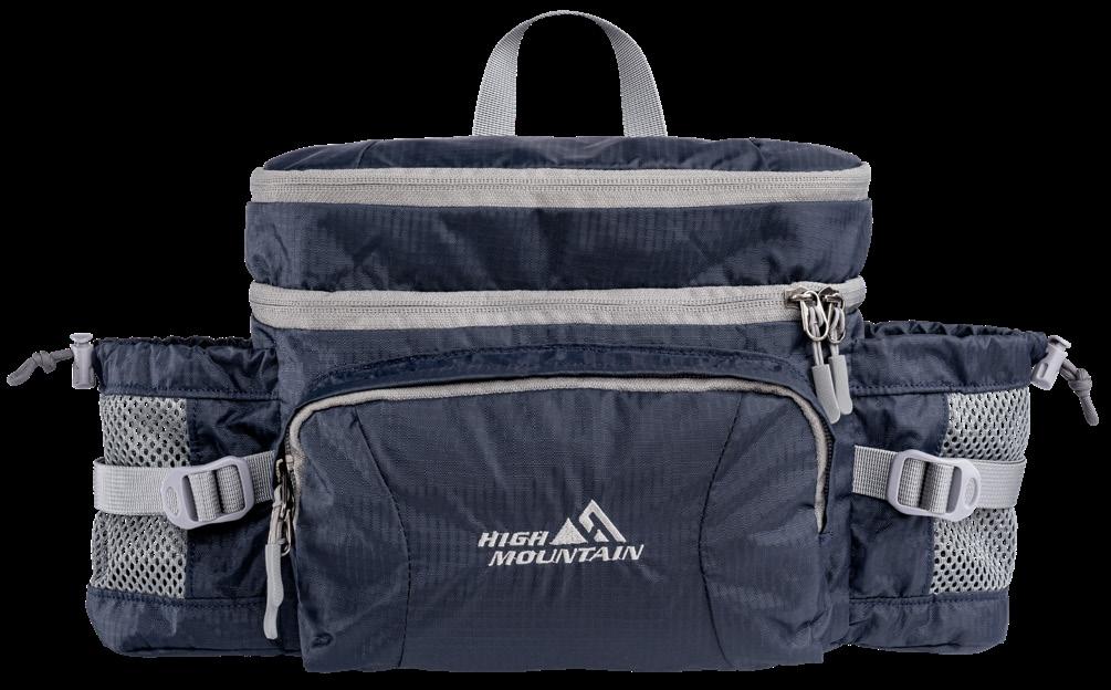 Praktisk väska i vattenavvisande, slitstarkt och tyst material. Fyra fack i olika storlekar. Vadderad insida klädd i mesh för bästa bekvämlighet och ventilation. Kraftigt spänne och justerbara remmar. 100% polyester.