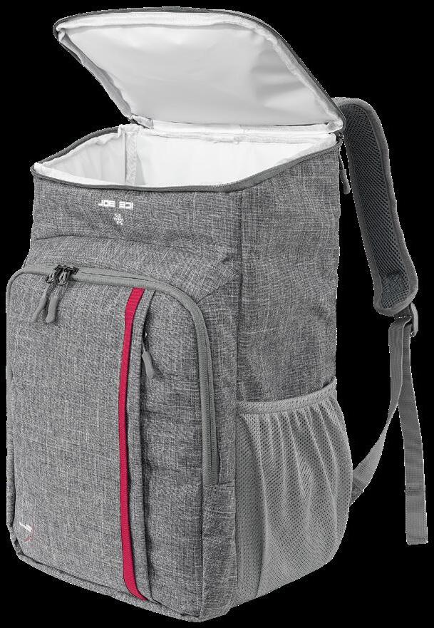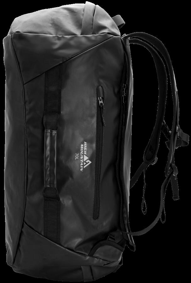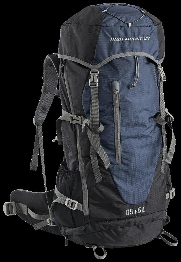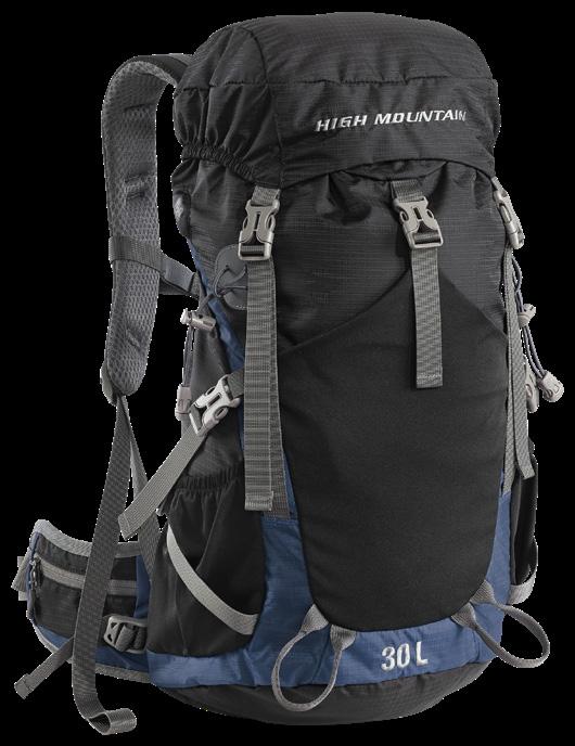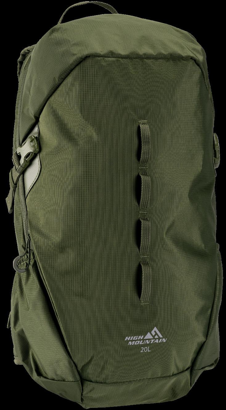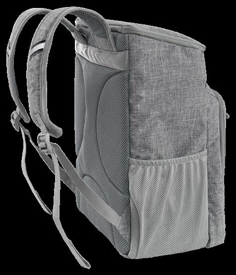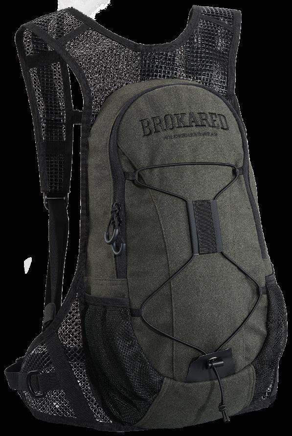 Smidig och tyst ryggsäck av kraftigt, vattenavvisande, slitstarkt och tyst material. Platta bärremmar och midjebälte i ventilerande nät. Midjebältet har två D-ringar att fästa prylar i. Stötdämpande kuddar i ryggpartiet och reglerbart spänne över bröstet. Stort huvudfack med två innerfack i mesh, ett genomskinligt fack samt en kabinhake. Två lättåtkomliga meshfack på utsidan. Elastisk rem på framsidan. 100% polyester. Ca 11 L.