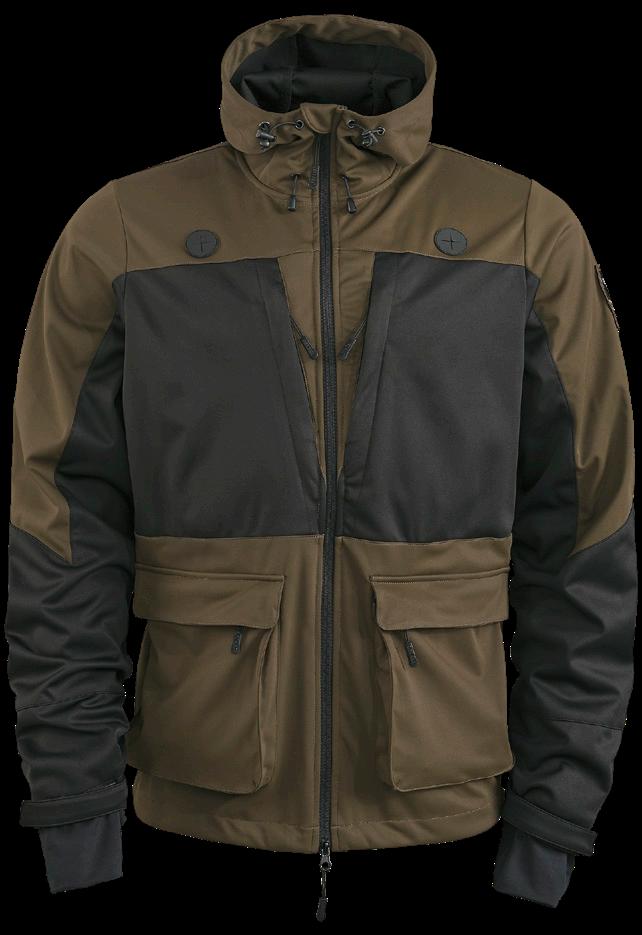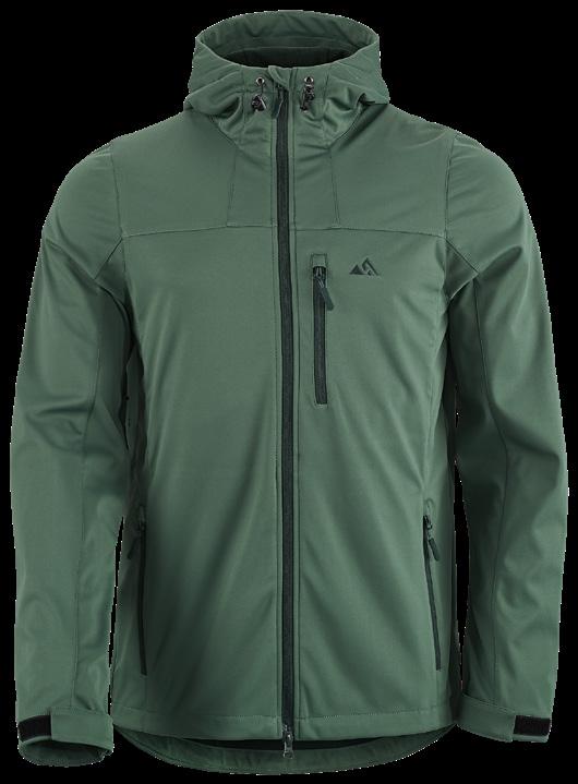 Mjuk, smidig och tyst jacka i stretchig softshell med förstärkningar på utsatta ställen. 4-vägsstretch ger ökad frihet, flexibilitet och god passform. Ställbar huva och sidfickor. Liten ficka vid ärmsluten. Ventilationsdragkedjor med mesh under ärmarna. Tvåvägsdragkedja och ställbar nederkant. Yttertyg 1: 100% polyester. Yttertyg 2: 90% polyamid, 10% elastan.