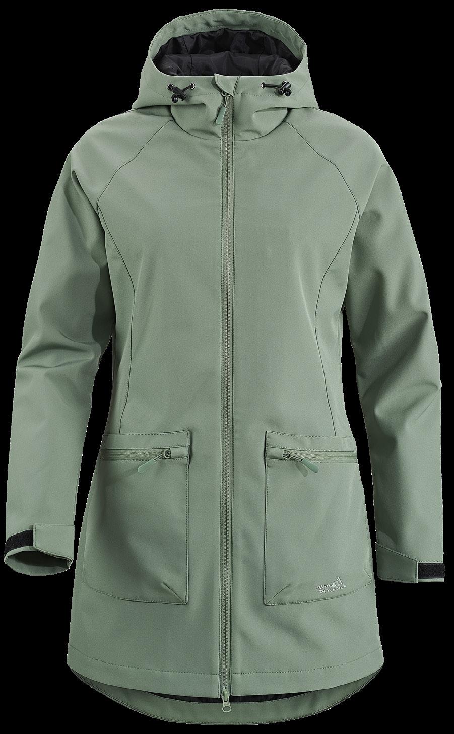 Vindtät kappa i lätt och smidig modell. Mjuk, slitstark utsida av softshell och med tunt, glansigt polyesterfoder på insidan. Tvåvägsdragkedja. Fickor framtill med dragkedjor och fickor undertill med öppning från sidorna. Innerficka med dragkedja. Ställbara ärmslut med kardborrejustering. Andas 6000 g/m2/24h. 96% polyester, 4% elastan. Foder: 100% polyester. Svart, Plommon, Grön, Beige. Stl. 36-50.