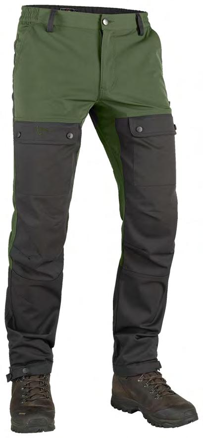 Ett bra komplement till ditt vattentäta jaktställ och perfekt att använda vår, sommar och höst. Kraftigt och slitstarkt tyg med enfärgade, stretchiga partier som ökar rörligheten där den behövs. Fluorfri impregnering. Yttertyg 100% polyester. Stretch 92% polyamid, 8% elastan. Förstärkning 63% polyester, 34% bomull, 3% elastan. Maskintvätt 40°. Färg: Grön.