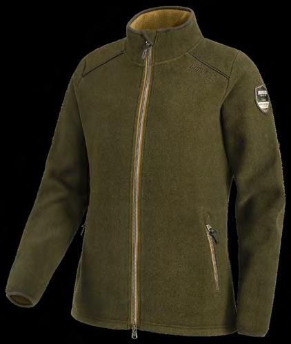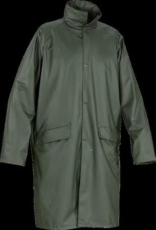 Kraftig tvåvägsdragkedja samt vindslå med knappar. Rymliga bälgfickor med dragkedja, lock och knappar. Värmefickor med fleece, radiofickor med dragkedjor som stängs utåt samt antennhållare.