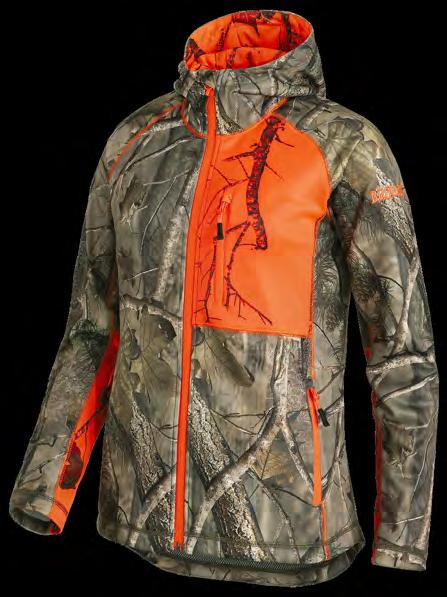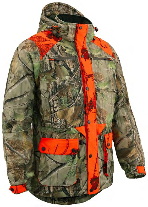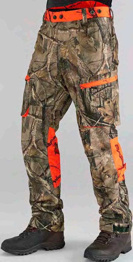 Camouflageställ i WildTrees Nature Brown™ med detaljer i orange signalfärg. Ett lätt, smidigt och tyst kvalitetsställ i mjuk, flossad microfiber. För dig som ställer höga krav på funktion, bekvämlighet och pris. Perfekt för den rörlige jägaren. Vind- och vattentäta med bra andasförmåga och ventilationsmöjligheter. High-Tex-membranet har en vattenpelare på 12 000 mm och andas 8000 g/m²/24h. Tejpade sömmar och vattenavvisande YKK®-dragkedjor. Fluorfri impregnering som ger en vatten- och smutsavvisande yta. 100% polyester. Maskintvätt 40°.