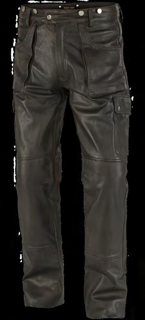 Öppnas och stängs med två knappar och gylf. Framfickor och benfickor med bälg och dragkedja. På lårens baksida finns ventilationsdragkedjor med mesh. Byxan är något förhöjd baktill och har resår samt antiglidremsa i linningen som gör att skjortan eller tröjan inte glider upp. Justerbara benslut.