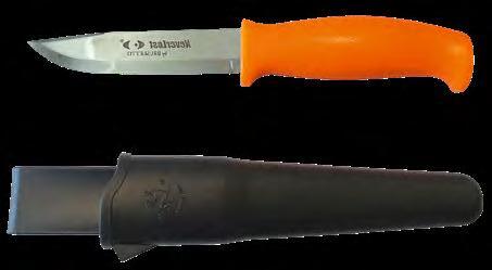 • 1 Flåkniv (Bladlängd 13,5 cm/Totallängd 26 cm) Rostfritt stål S/S440. Levereras med ett kraftigt canvasfodral.