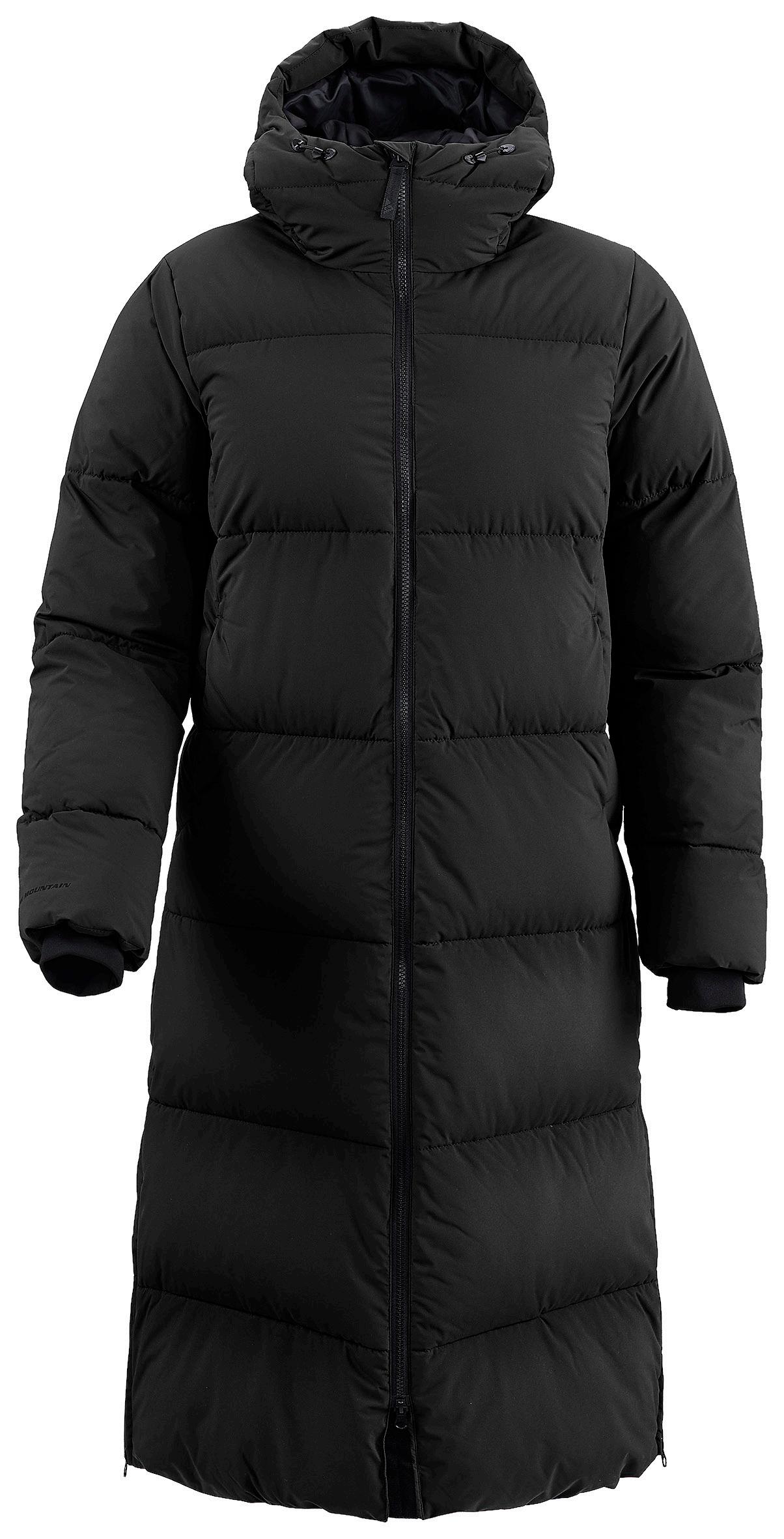 Lång vinterparkas med praktiska dragkedjor som ökar vidden i nederkanten. Tvåvägsdragkedja, fast huva och muddar i ärmsluten. Två dolda fickor med dragkedjor och en innerficka. Yttertyg: 100% återvunnen polyester. Fyllning: 100% återvunnen polyester. Foder: 100% återvunnen polyester. Svart, Vinröd. Stl. 36-52.