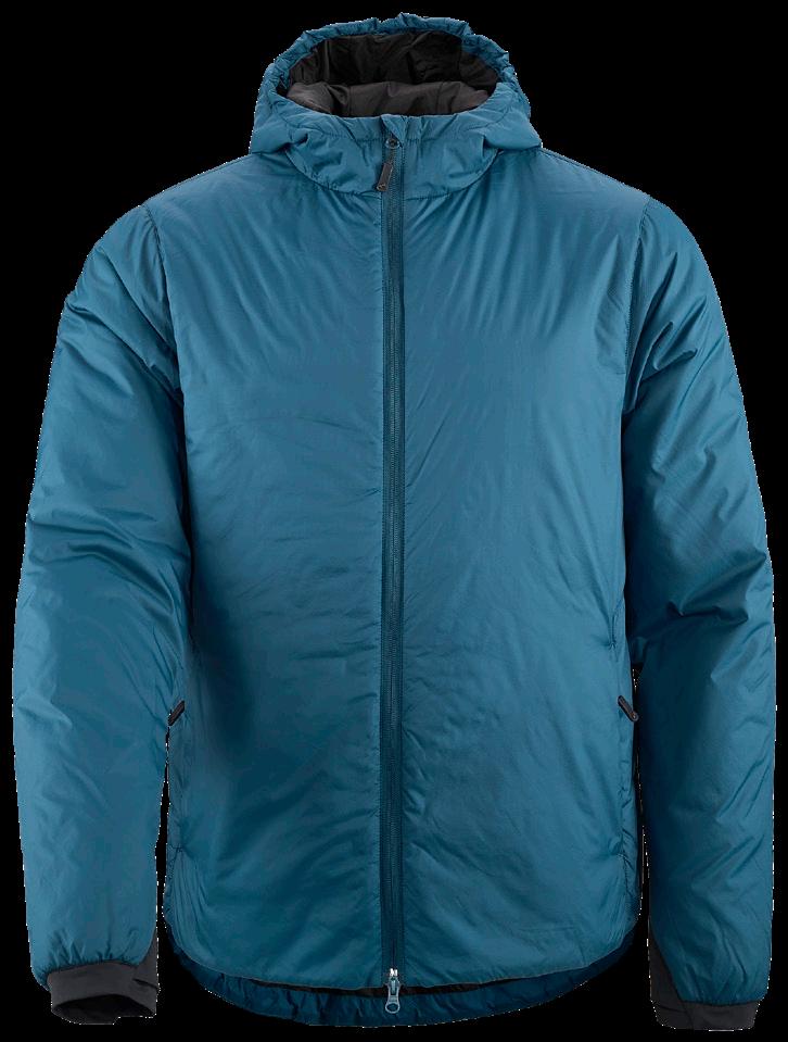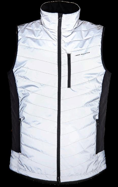 Samtliga sömmar är tejpade. Fast, justerbar huva. Kraftig tvåvägsdragkedja med vindslå mitt fram. Mjuk fleece vid övre delen av dragkedjan för att undvika skav. Mjuka muddar i de justerbara ärmsluten. Två fickor med bälg och lock framtill och två bröstfickor med dragkedjor. Fast reflexband i högra fickan som hängs ut vid behov. Dammodellen är något insvängd i midjan. Yttertyg: 100% polyester. Fyllning: 100% återvunnen polyester.