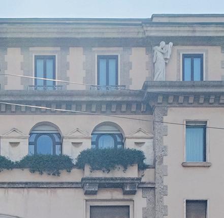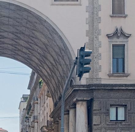 passaggio che conduce alla vicina ed esclusiva piazza Duse tramite via Salvini. Costruito alla fine degli anni ’20, come “porta di ingresso” al nuovo quartiere Excelsior che in quegli anni stava sorgendo su commissione della Società Buonarroti-Carpaccio-Giotto da cui prende il nome. Progettato come due parti gemelle con altezze diverse, la facciata che dà su corso Venezia si sviluppa su 7 piani e presenta elementi decorativi come colonne di stile dorico, cornici e statue, forme e linee di stile Decò; i corpi rivolti verso via Salvini, invece, presentano un piano in meno per dare spazio a una grande terrazza che si sviluppa lungo l’intero affaccio.