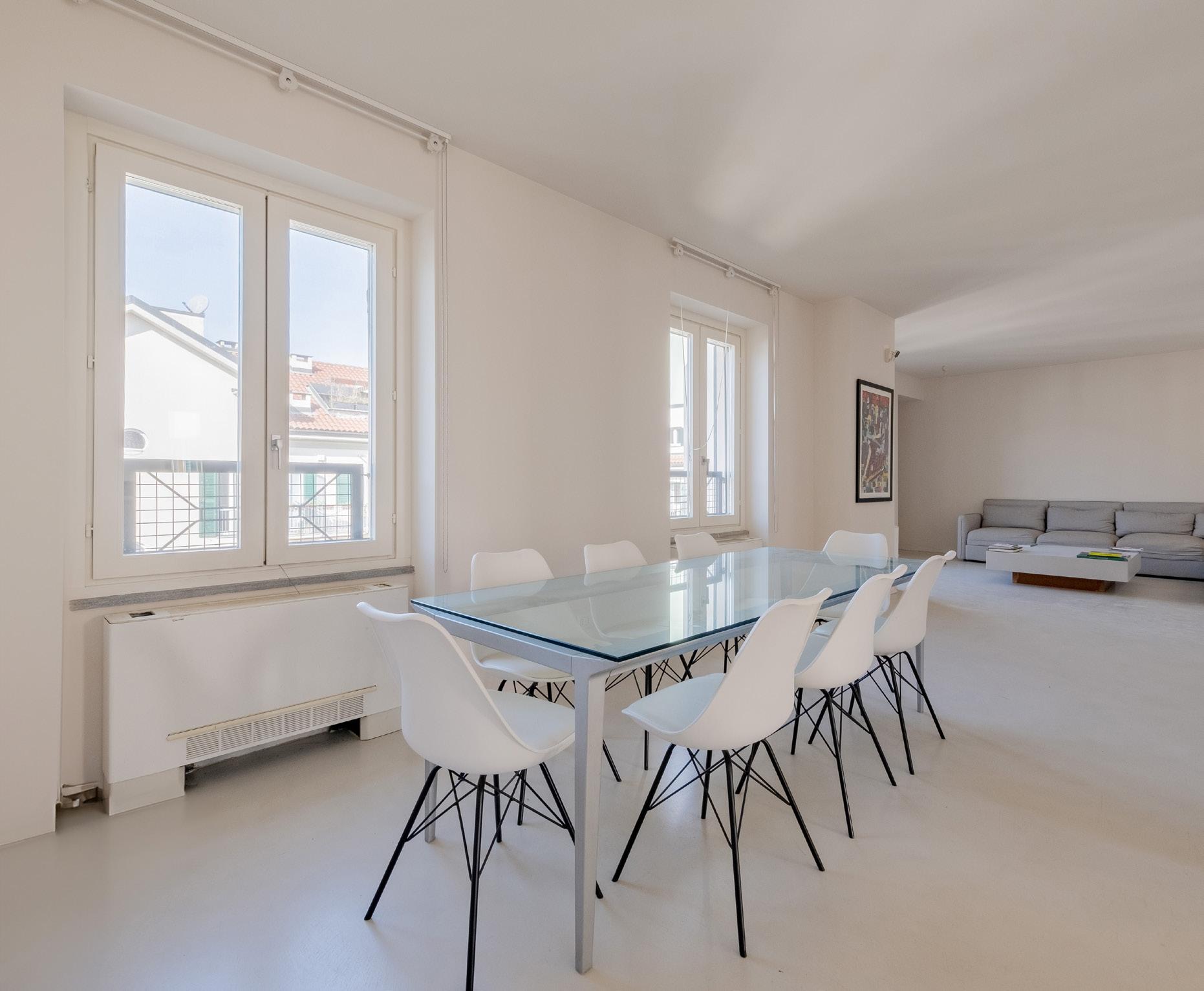 L’edificio, progettato negli anni ’30, rappresenta uno dei primi esempi di architettura razionale a Milano. La casa si distingue per le sue linee essenziali e pulite, per la disposizione degli ambienti all'interno pensata per ottimizzare l'uso della luce naturale e per rispondere alle esigenze di comfort delle persone che vi abitano.