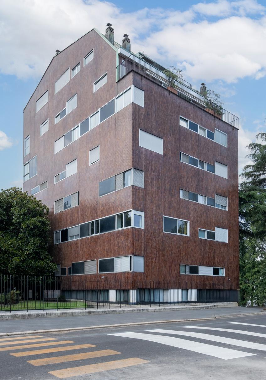 Nel cuore del quartiere Maggiolina sorge questo edificio di nove piani nato con l’intento di diventare un nuovo punto di riferimento dello skyline della città. Circondato da un grande giardino, presenta un volume irregolare con altezze diverse per le due facciate principali, proprio come per la torre Rasini di Gio Ponti ed Emilio Lancia. La superficie dell’edificio è interamente rivestita in ceramica, presenta serramenti a filo e l’ascensore di servizio corre in una fessura verticale a filo della facciata rendendo visibile dall’esterno il movimento della cabina.