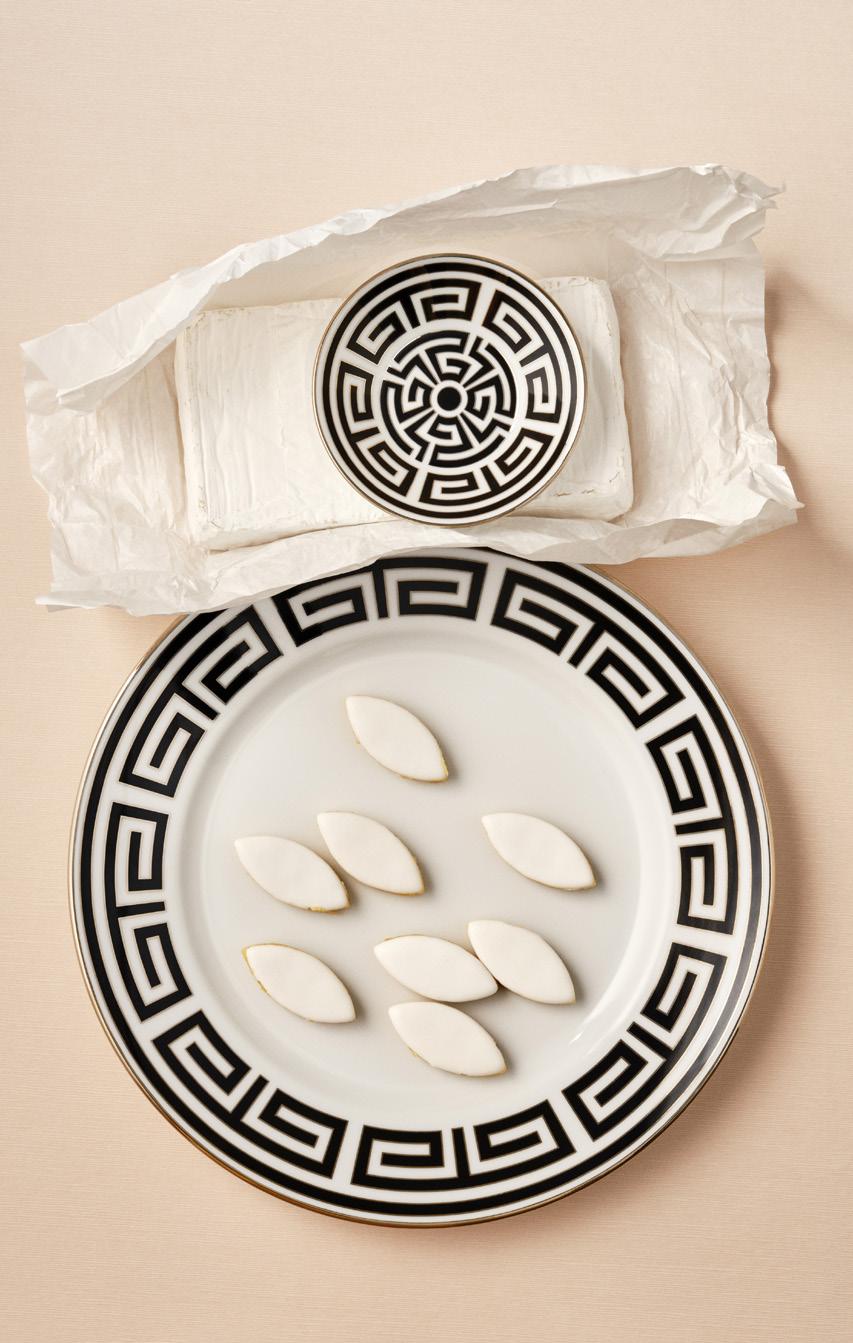 richiama le porcellane del tardo Settecento dalle linee neoclassiche, ed esalta lo stile e il rigore del disegno.