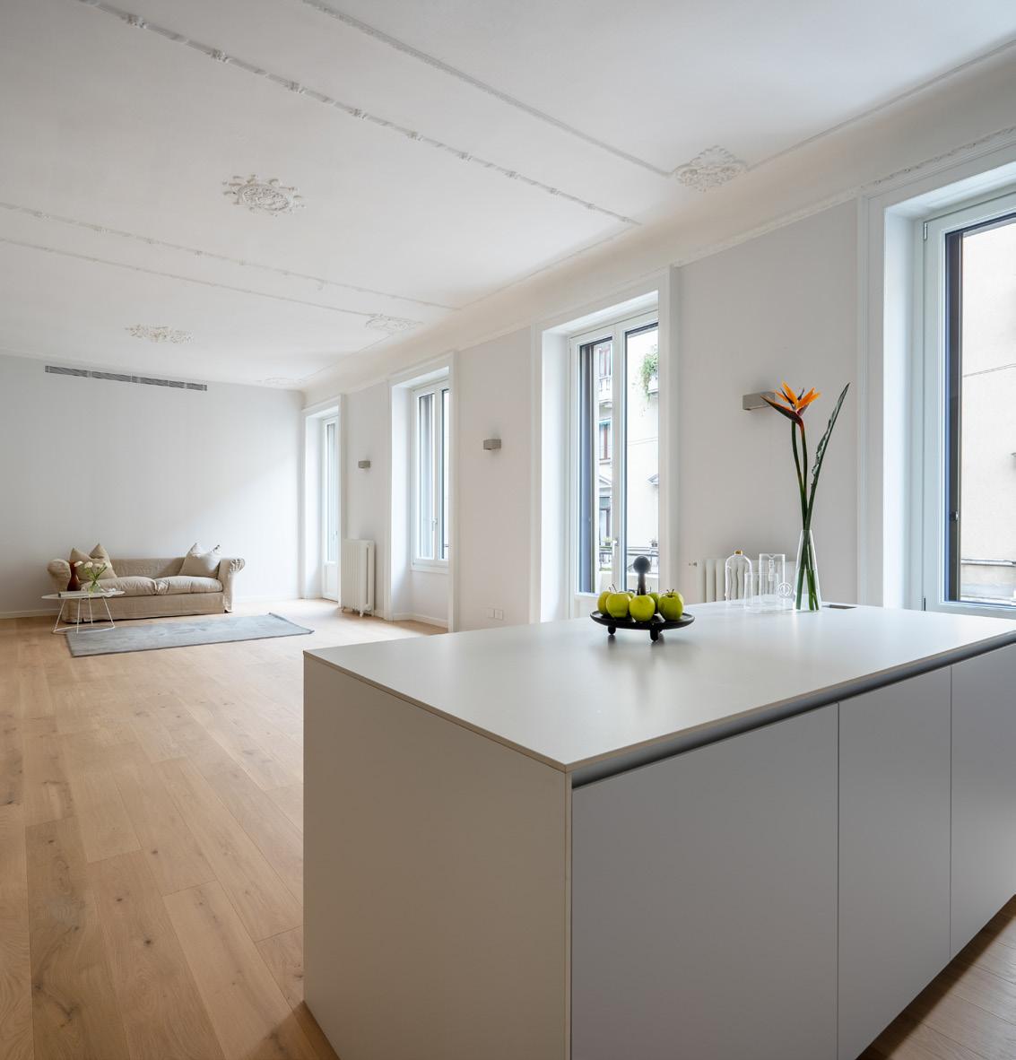 Ogni pianta viene studiata nei dettagli con l’inserimento di arredi fissi, pareti attrezzate e impianti moderni. Julia, Carola e Fausta sono le prime tre della serie che vedranno la realizzazione di altre nove case come la Domus Adele in viale Coni Zugna 29 o Livia, Serena, Onoria, Aurelia e Flavia in via Privata Letizia.