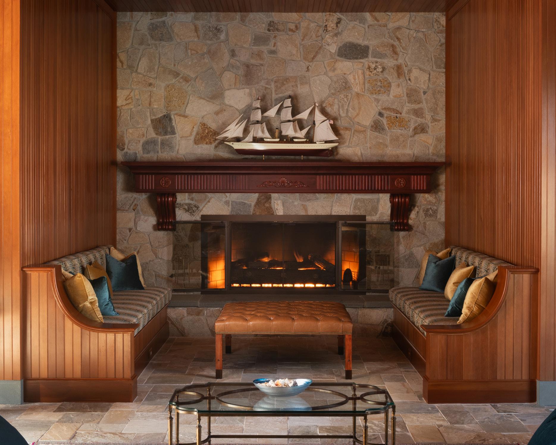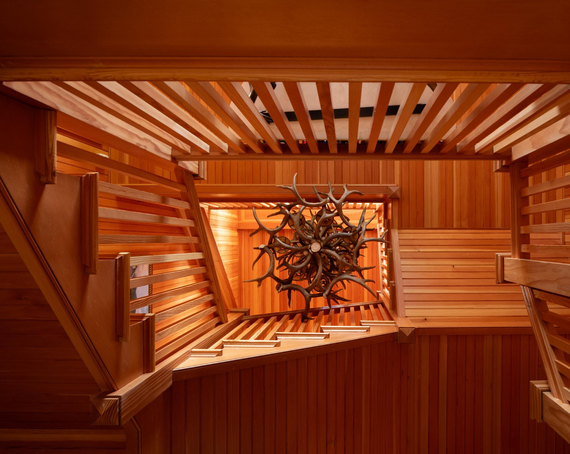 A magnificent bluestone curved path, enhanced by meticulously hand-carved Italian stone, graciously ushers you from the mahogany deck to the Carriage House, mirroring the primary residence’s allure. The carriage house stands as the epicenter for all business endeavors, featuring a wellappointed boardroom and supplementary guest suites tailored to accommodate business associates in any capacity. Be embraced by the warmth of its fir walls and ceilings, and the delicate radiance of antler chandeliers.
