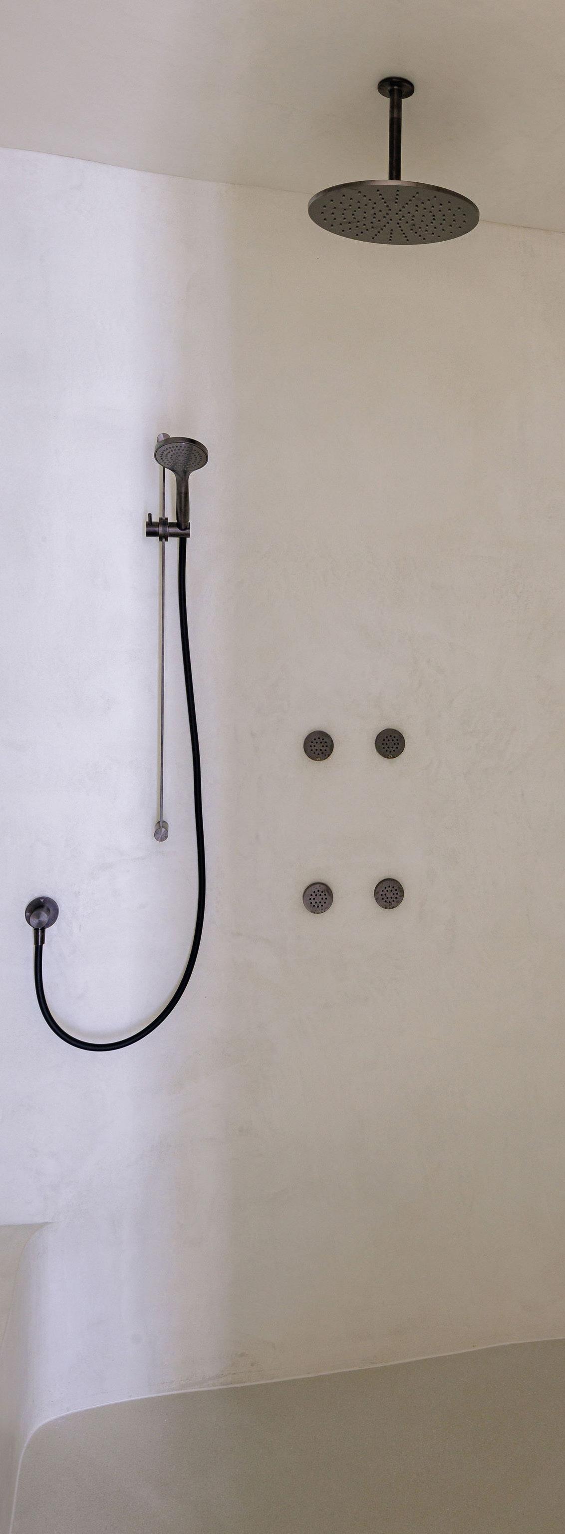 • Second shower with spray head and oversized custom tub and custom-crafted formed concrete floor slabs