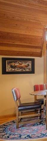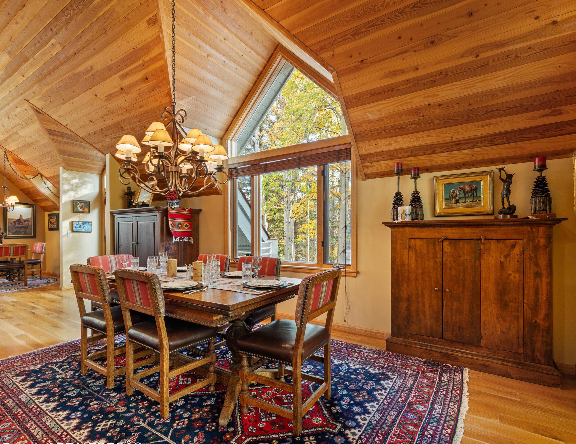 Ideally situated just 5 miles south of the renowned Jackson Hole Mountain Resort and 6 miles west of the charming Town of Jackson, this property offers a perfect blend of tranquility and convenience. Equipped with 3 bedrooms all with ensuite bathrooms, a large office with built in bookcases, beautiful wrap-around deck for outdoor entertainment and a 2 car garage, let this be your jumping off point to experience the best of mountain living in this stunning location. The interior features tongueand-groove vaulted ceilings that enhance the open, airy feel, while built-in closets, bookshelves, and desks provide ample storage and workspace.