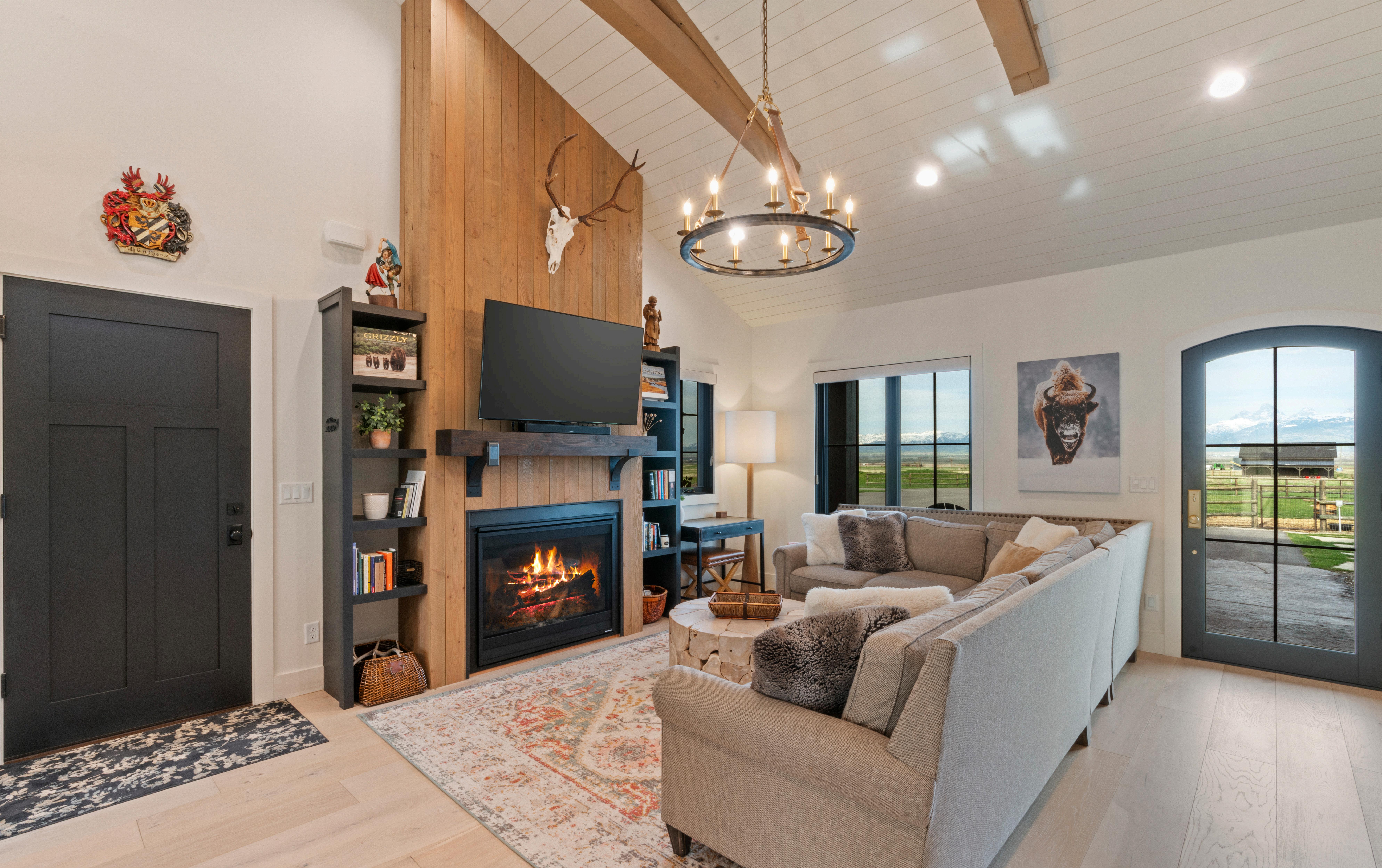 Exquisite Craftsmanship with stunning mountain views, this modern, light-filled retreat on 4.65 acres is 10 minutes to downtown Driggs and offers abundant space for large gatherings, while the thoughtful layout delights smaller groups. The 5 bedroom, 5.5 bathroom main house has multiple living rooms, bedrooms with ensuite bathrooms, a workout area with sauna, a bonus room and more. An entertainer’s paradise, the home has imported quartz countertops, two refrigerators, a butler’s pantry and tons of storage. The 2 bed, 2 bath guest house is adorable, and a proven income producer with short-term rentals. Small animal enclosures, plus the 1 acre fenced corral, will make your hobby farm dream a reality. Gardeners will delight in the greenhouse and enclosed raised beds. Watch the sun set on the patio or around the fire pit - the epitome of mountain living in the shadow of the Teton and Big Hole mountain ranges. National Forest access is a stone’s throw from this home as well! Make this masterpiece your paradise today.
